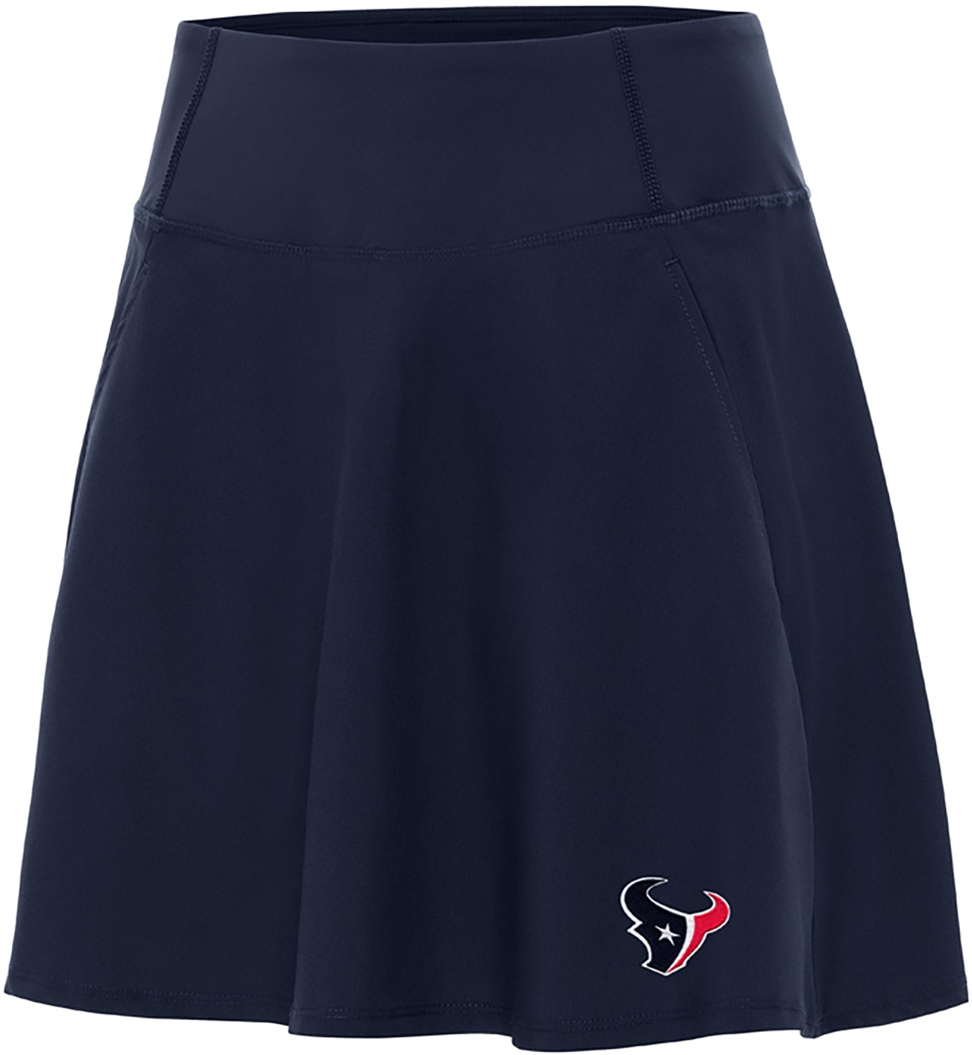 Show off your style with the Antigua Women's Houston Texans Chip Skort. This comfortable skort has a built-in shorts liner and an elastic waistband to keep you covered all day. The polyester and spandex blend feels soft and comfortable against your skin while offering the right amount of stretch. The Texans logo is complemented by a forward seam detail for an elegant way to rep your team.