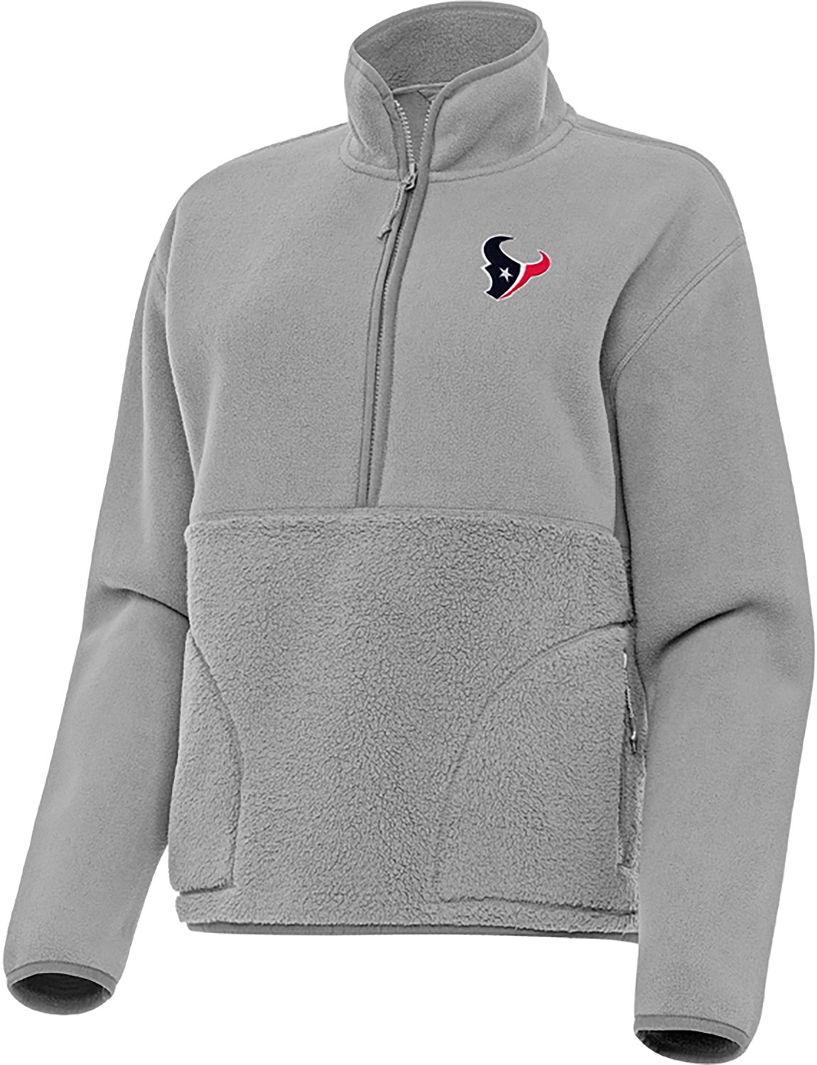 Keep warm all day in the Antigua Women's Houston Texans Figure QZ Pullover. This soft Sherpa fleece is made of lightweight polyester that keeps you comfy and cozy without weighing you down. It is easy to wear over your clothes and features a Texans logo to cheer on your team.