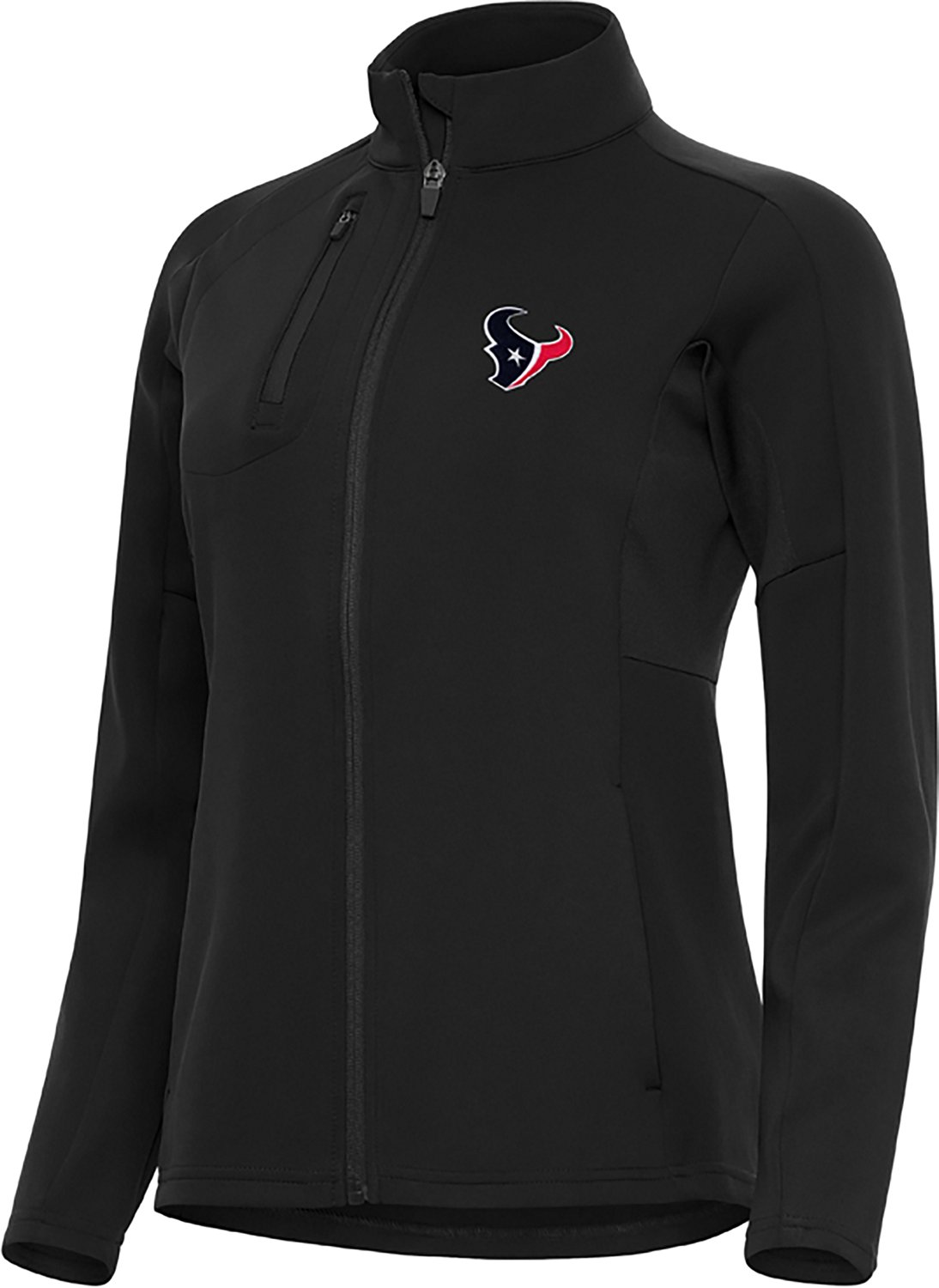 Support your favorite team all year in the Antigua Women's Houston Texans Generation FZ Jacket. This soft pullover-style jacket is made of a stretchy polyester blend that is lightweight and comfortable. The full zipper makes it easy to layer over t-shirts, while the Texans graphic shows where your loyalties lie.