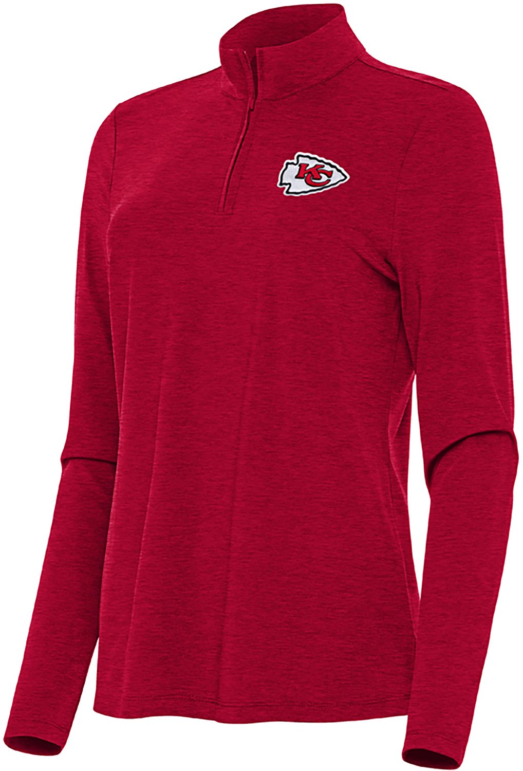Tee up and support your favorite team in the Antigua Women's Kansas City Chiefs Bright QZ Pullover. This moisture-wicking pullover is made of a stretchy polyester blend that lets you move freely as you go about your day. The 1/4 zip makes it easy to layer over your favorite shirt, and the Chiefs logo lets your team pride shine brightly.