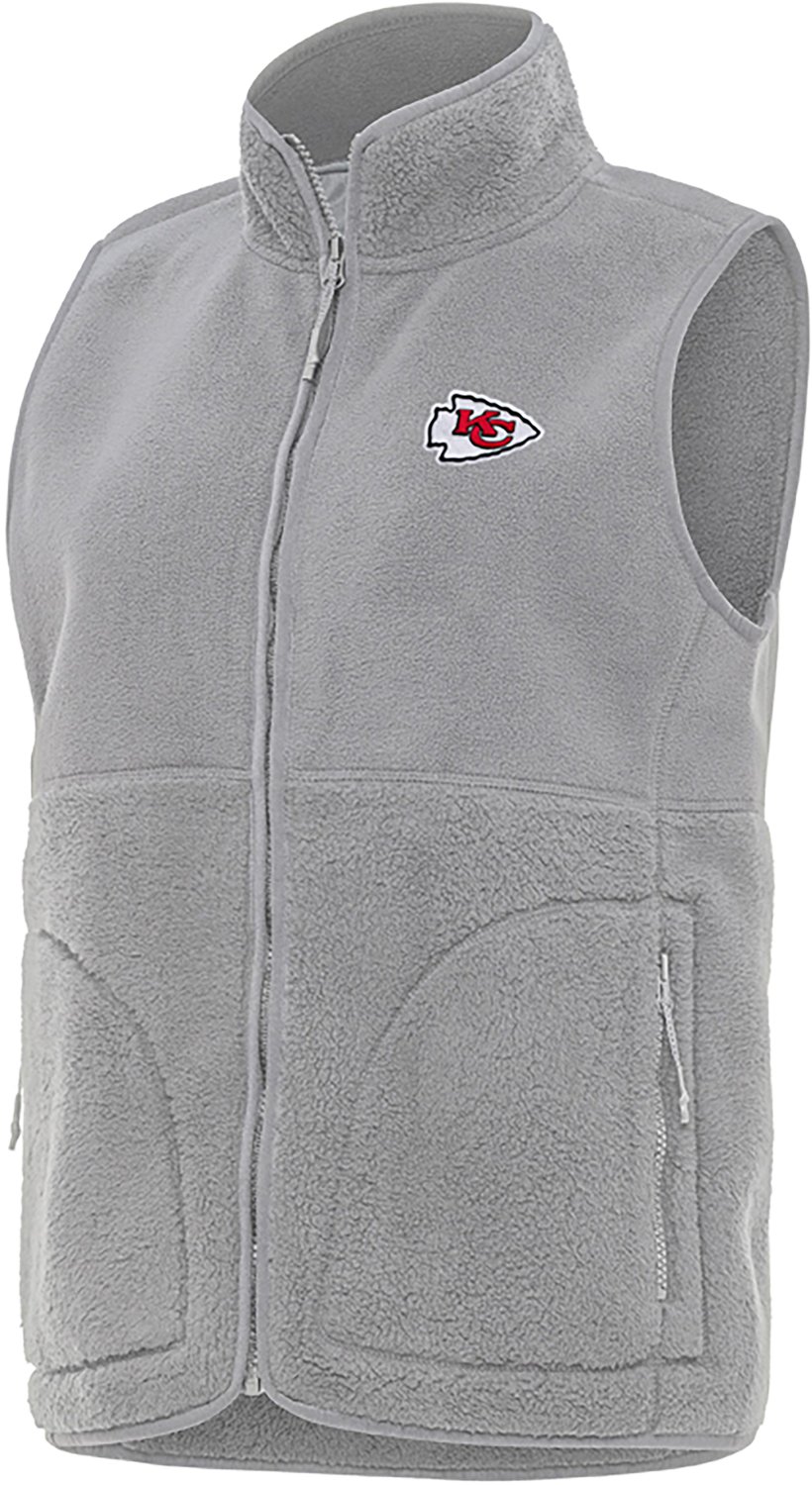 Rep your team all year in the Antigua Women's Kansas City Chiefs Nostalgic FZ Vest. This soft vest is made of a warm polyester sherpa fleece that keeps you cozy without weighing you down. The full zipper makes it easy to wear over your clothes, and the Chiefs shows your support.