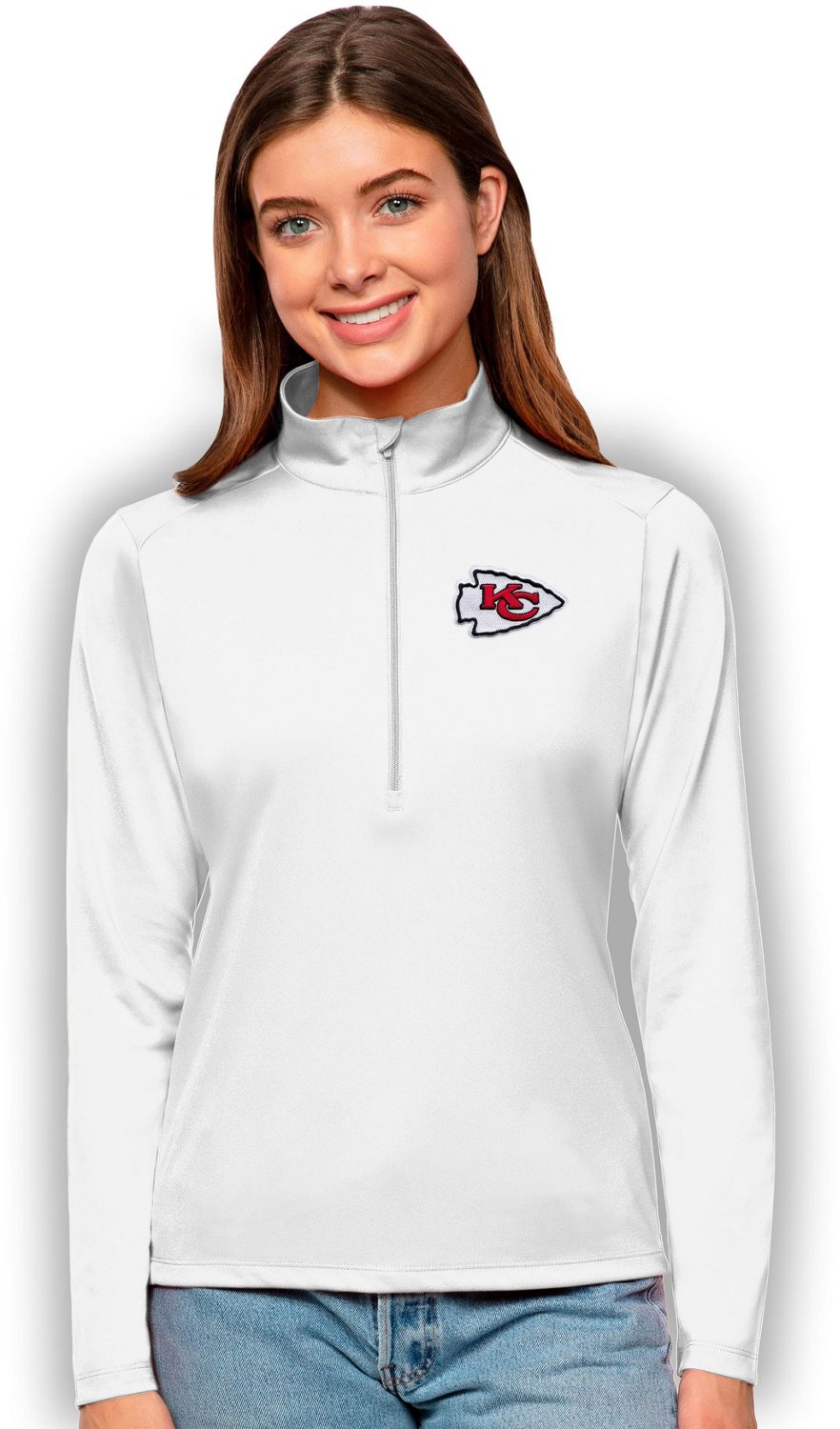 Keep yourself comfortable in Chiefs style by wearing the Antigua Women's Kansas City Chiefs Tribute Pullover. The polyester construction provides comfort throughout the entire day, and the Chiefs design displays your love of the team.