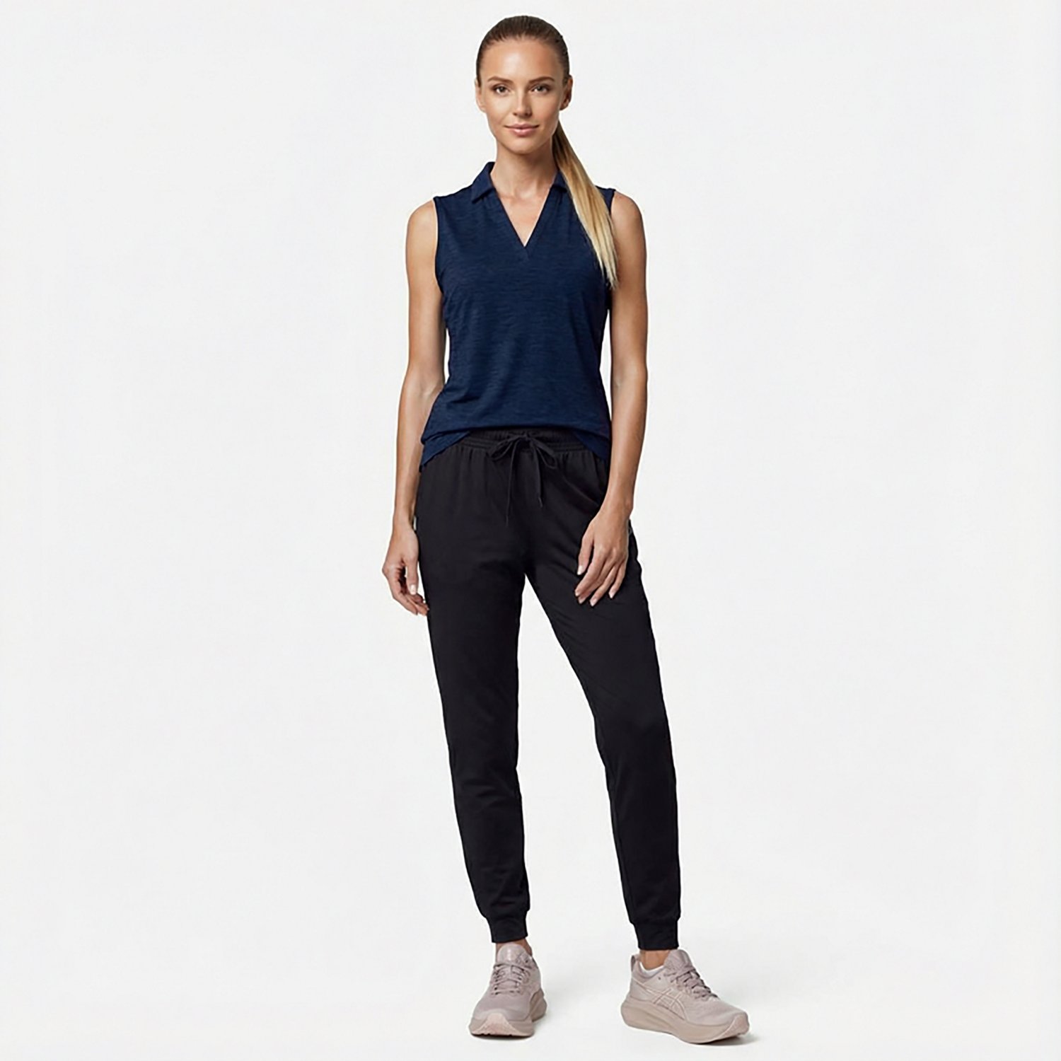 Stay cool and stylish with the Antigua Women's Layout Sleeveless Polo, crafted from a lightweight polyester and spandex blend with a heathered matte finish. This sleeveless polo has an open V-neck placket to add a modern, feminine flair.