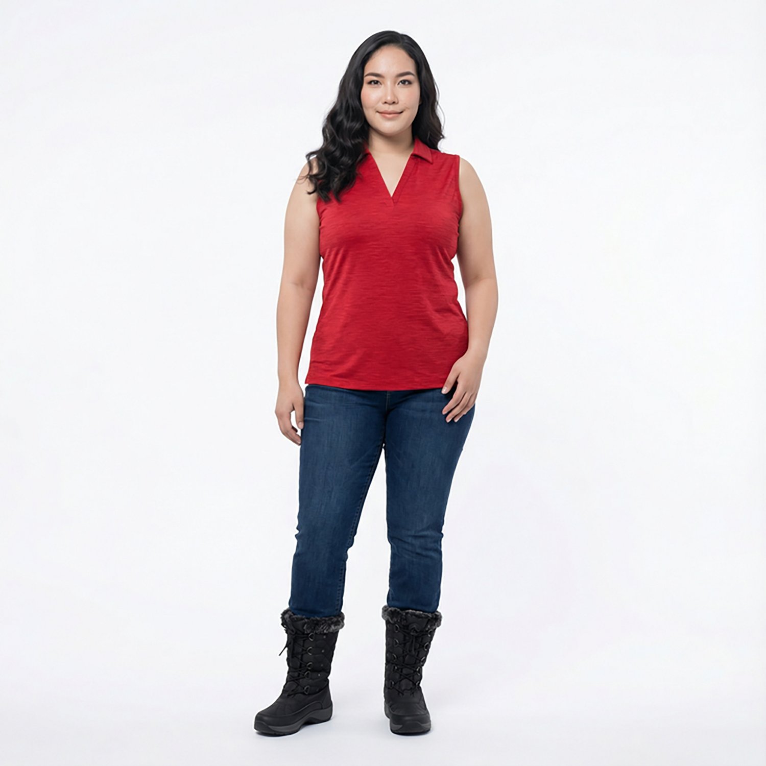 Stay cool and stylish with the Antigua Women's Layout Sleeveless Polo, crafted from a lightweight polyester and spandex blend with a heathered matte finish. This sleeveless polo has an open V-neck placket to add a modern, feminine flair.