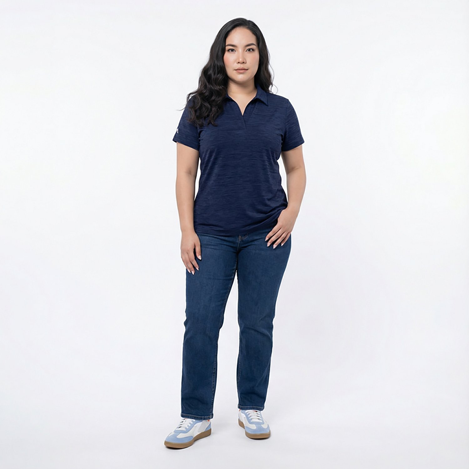 Add a versatile shirt to your casual wear with the Antigua Women's Layout V-neck Polo Shirt. Made of lightweight polyester and spandex, this soft shirt features four-way stretch, moisture-wicking technology and UV protection for a comfortable wear that protects you during long days in the sun. The open V-neck and high collar create a modern, feminine silhouette, while the classic design looks great tucked and untucked.