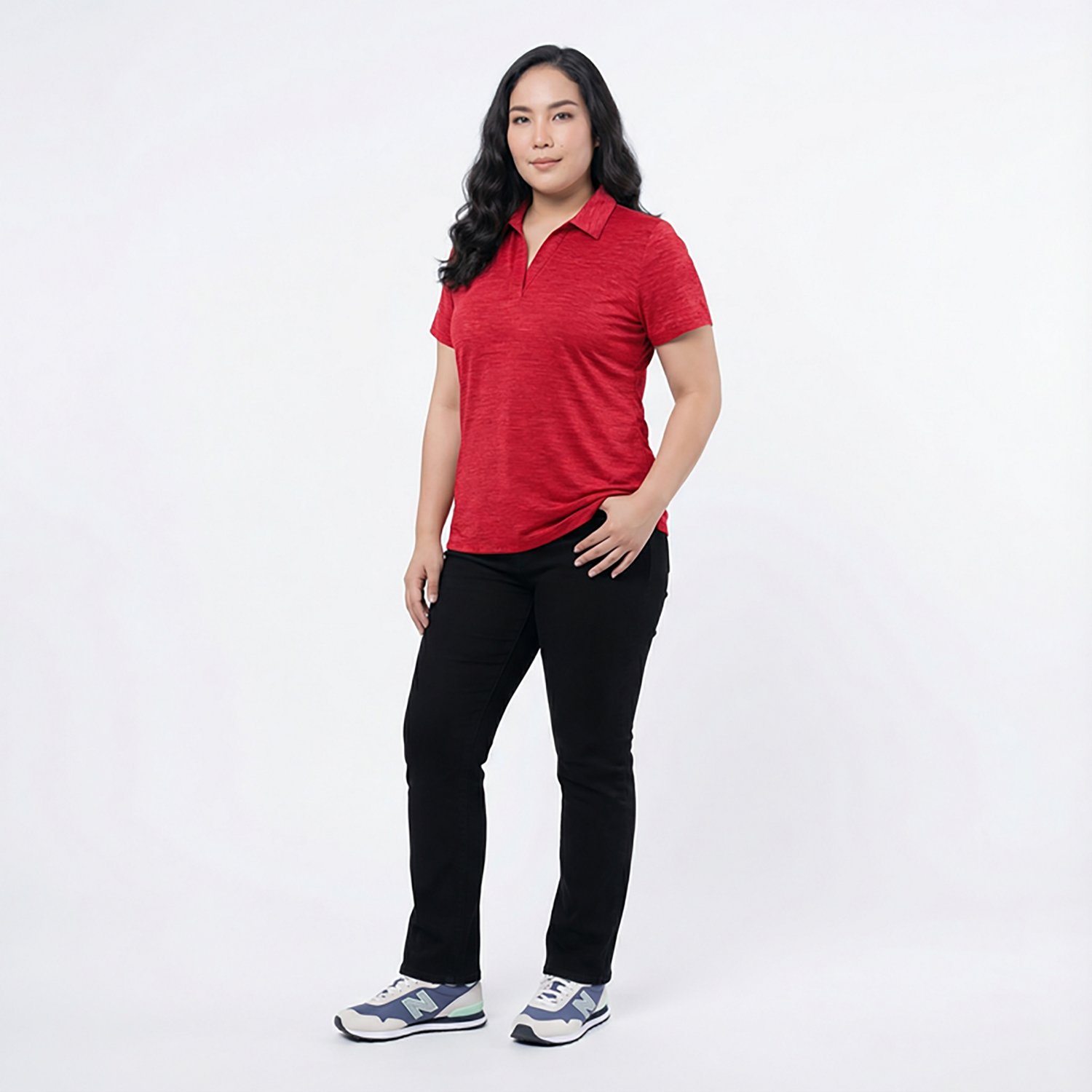 Add a versatile shirt to your casual wear with the Antigua Women's Layout V-neck Polo Shirt. Made of lightweight polyester and spandex, this soft shirt features four-way stretch, moisture-wicking technology and UV protection for a comfortable wear that protects you during long days in the sun. The open V-neck and high collar create a modern, feminine silhouette, while the classic design looks great tucked and untucked.