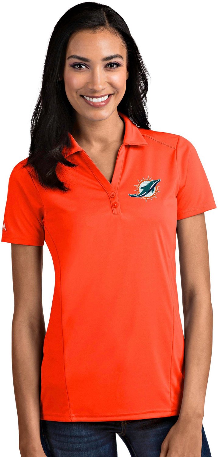 Show your support for the Dolphins in the Antigua Women's Miami Dolphins Tribute Polo Shirt. The 100% polyester construction offers comfy, long-lasting wear, and the 2-button placket provides a classic look. The Desert Dry™ technology helps keep sweat at bay. Shop at Academy.com for more NFL apparel.