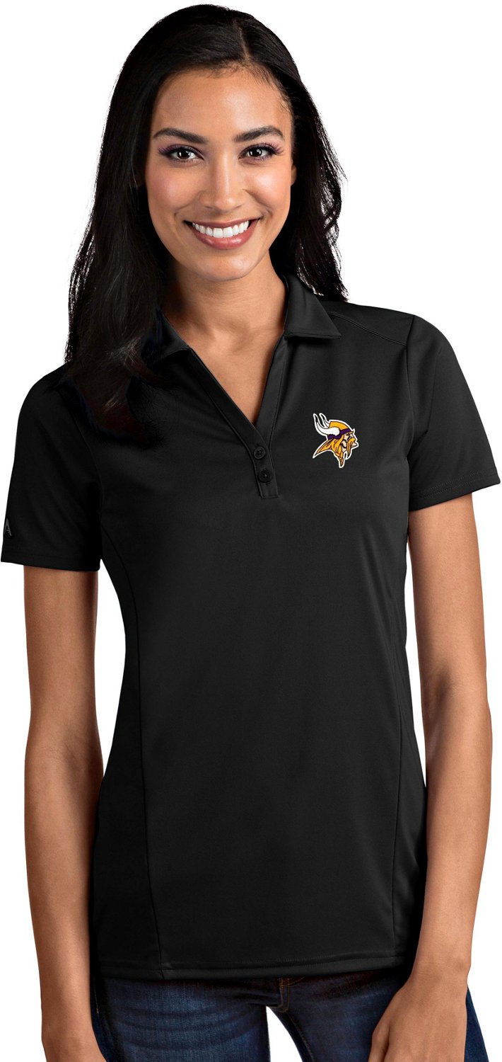Show your support for the Vikings in the Antigua Women's Minnesota Vikings Tribute Polo Shirt. The 100% polyester construction offers comfy, long-lasting wear, and the 2-button placket provides a classic look. The Desert Dry™ technology helps keep sweat at bay. Shop at Academy.com for more NFL apparel.
