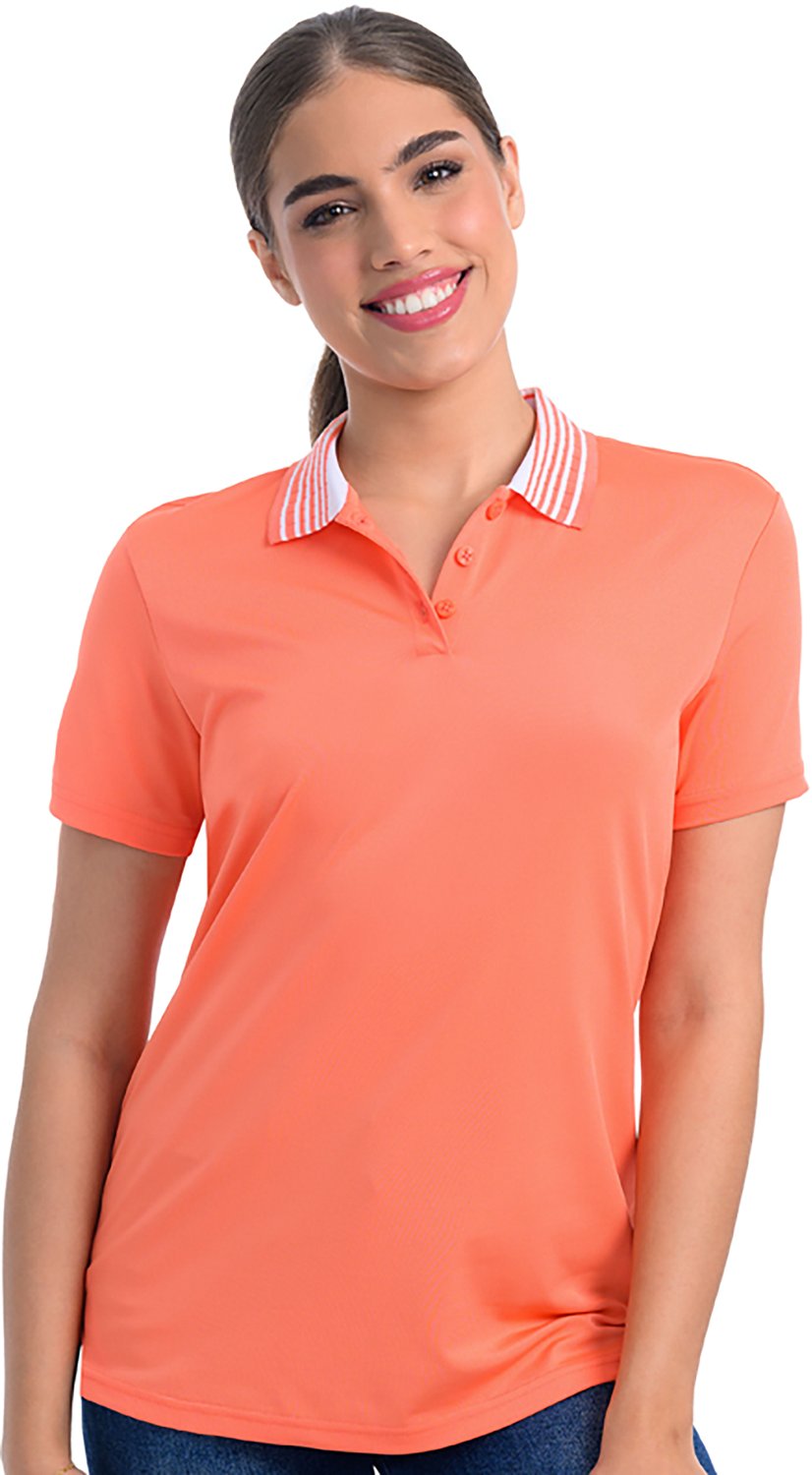 Look your best in the Antigua Women's On Par Polo Shirt. It is made of 94% polyester and 6% polyester. The drop needle buttoned collar adds a layer of sophistication, and its side vents enhance breathability. The V-neck placket finishes off the design.