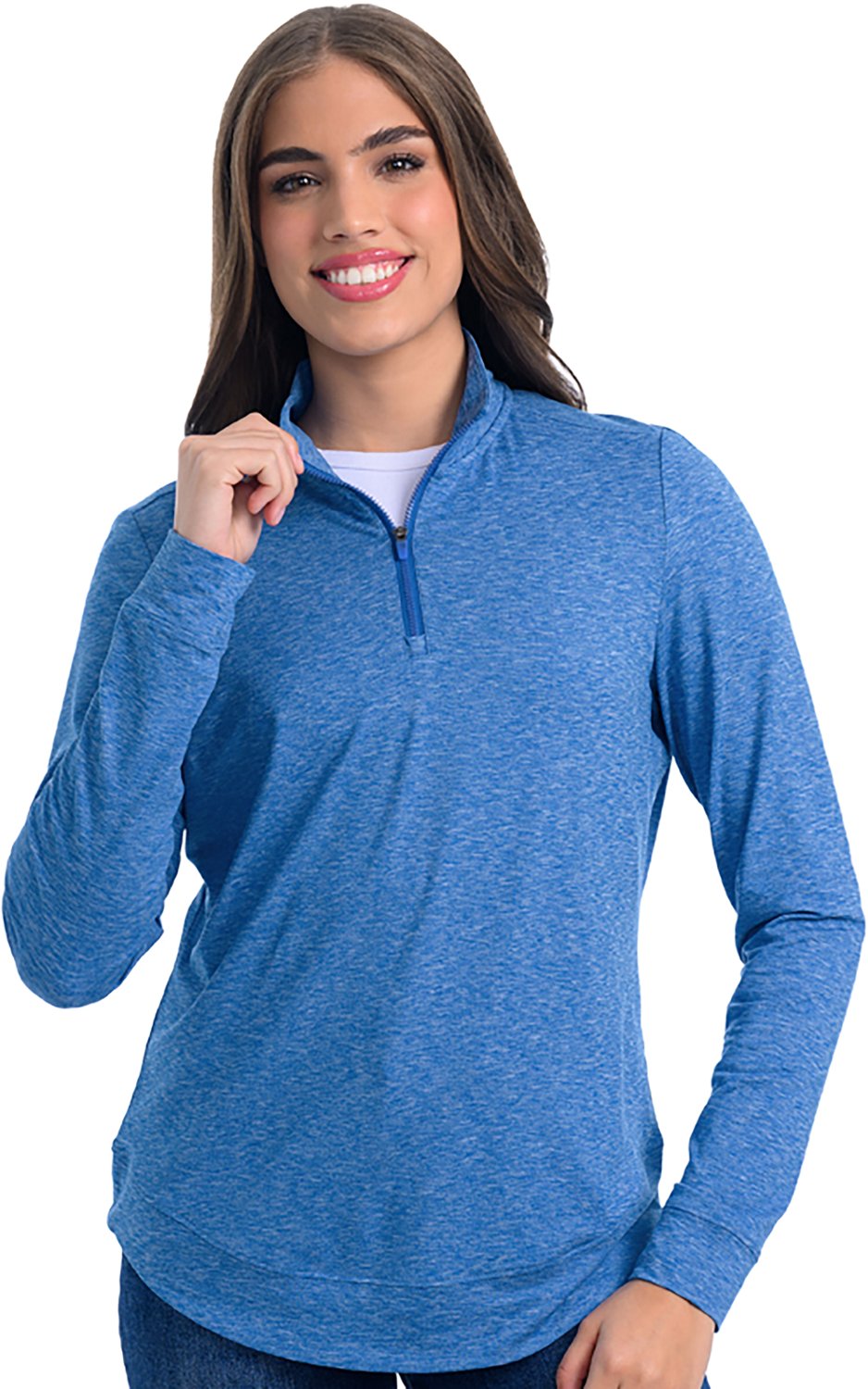 Look your best in the Antigua Women's Optimistic 1/4 Zip Pullover. It is made of 88% polyester and 12% spandex. The self-collar has edge stitching, and its 1/4 zip provides security. The pullover design offers an easy on and off.