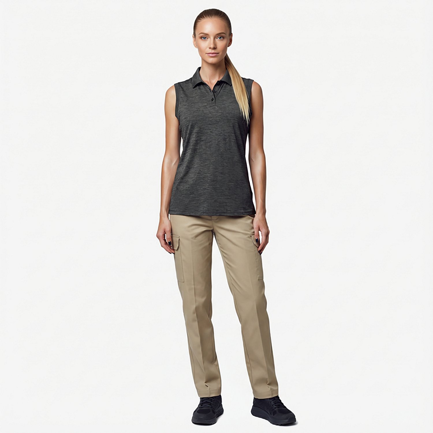 Look chic on the golf course with the Antigua Women's Recap Sleeveless Polo Shirt. This soft polo is made of a lightweight blend of polyester and spandex that stretches comfortably as you move, while the UV protection blocks UV rays. The side vents and moisture-wicking technology keep you dry and cool, while the draped fit creates a flattering look, whether tucked into golf pants or worn untucked over jeans.