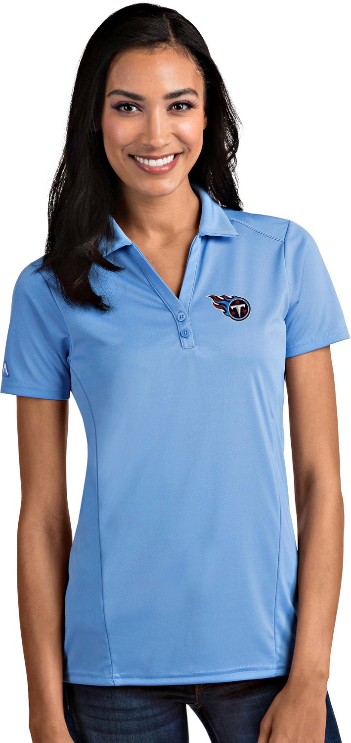 Show your support for the Titans in the Antigua Women's Tennessee Titans Tribute Polo Shirt. The 100% polyester construction offers comfy, long-lasting wear, and the 2-button placket provides a classic look. The Desert Dry™ technology helps keep sweat at bay. Shop at Academy.com for more NFL apparel.