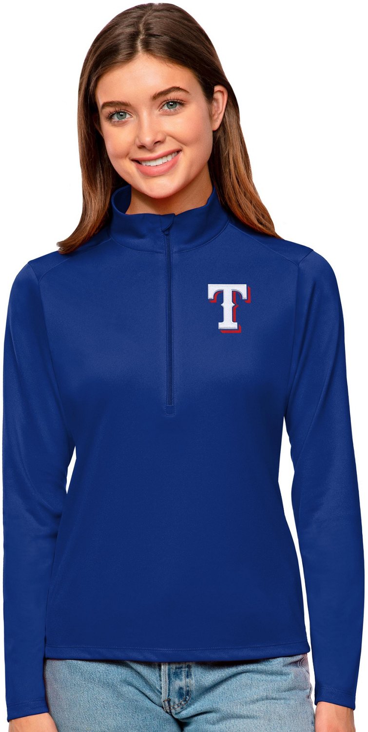 Represent your team on the water or the golf course when you wear an Antigua Women's Texas Rangers Tribute Pullover. This lightweight interlock pullover provides UPF 50+ protection in harsh sunlight. The 1/4 zip closure lets you adjust your coverage while a logo graphic puts team spirit on display.