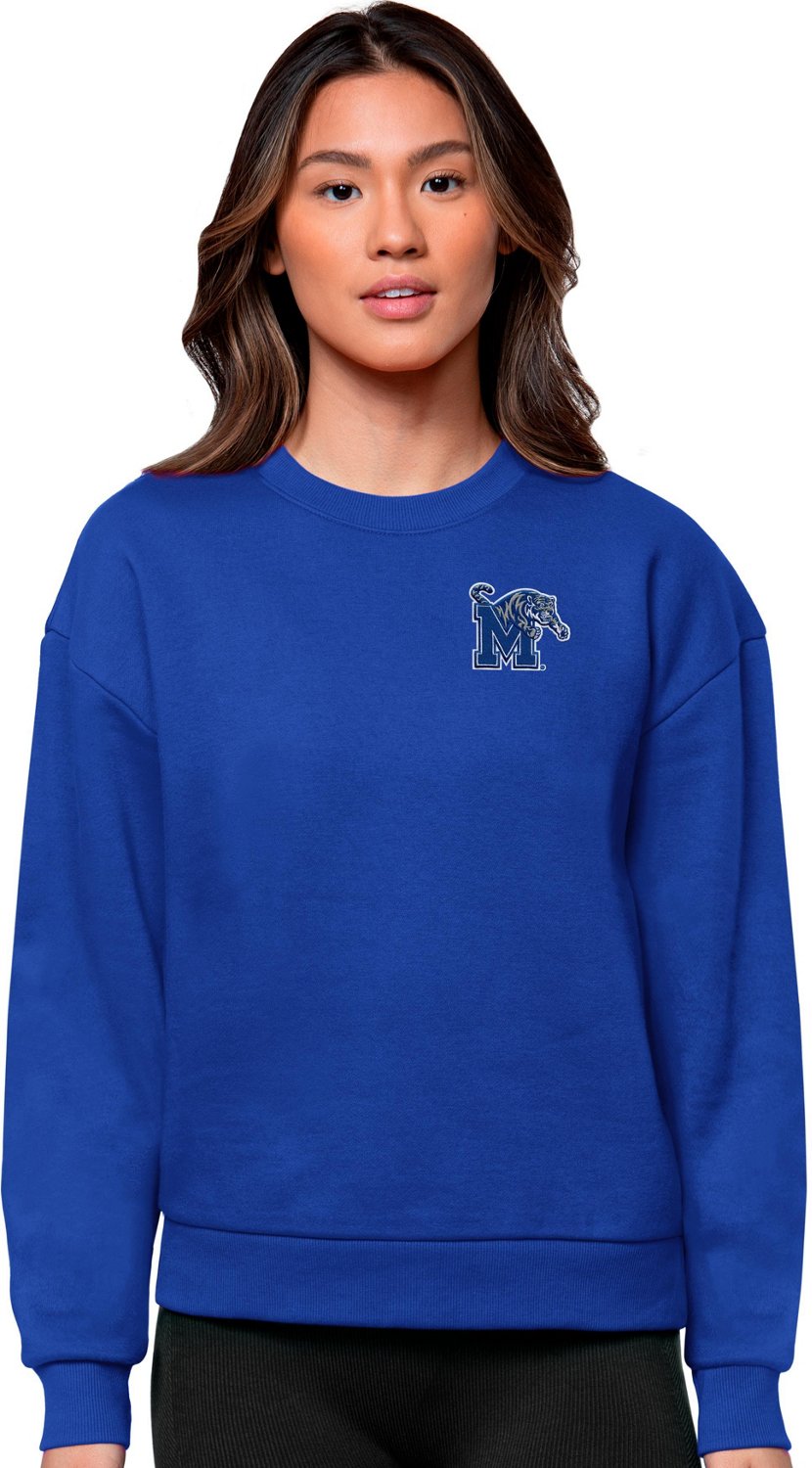 Curl up and get cozy with the Antigua Women's University of Memphis Victory Crew Sweatshirt. This comfortable oversized pullover is made with cotton blend jersey fleece for extra softness and warmth. A printed logo shows your support for your favorite college sports team.