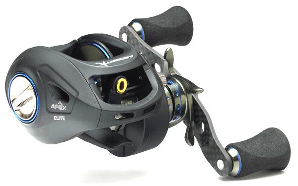 Catch your next trophy fish with help from the Apex Elite AA65LBA Casting Reel Left-handed, which features a high-strength aluminum frame for power and a 6.5:1 gear ratio for fast retrieves. The 12+1 ball bearing offer smooth casting, and the 270° Mag brake system is externally adjustable. The reel is designed with a carbon-fiber, swept-back handle with EVA grip knobs to help provide comfort as you reel in the big one. Forged aluminum star drag. Deep V 6061 T6 machined aluminum spool. 5.9 oz.