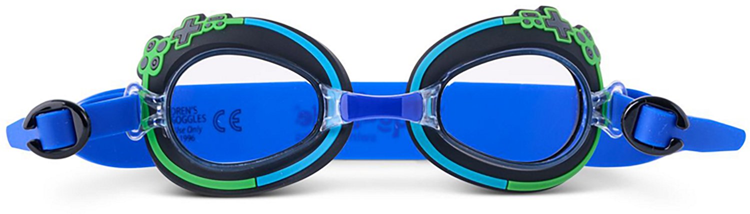 Protect your little one's eyes from the water when they wear the Aqua2ude Kids' Gaming Controller Swim Goggles. Their strap and gasket are made of silicone. The nose piece and frame are made of PC plastic, and their playful design adds a fun touch.