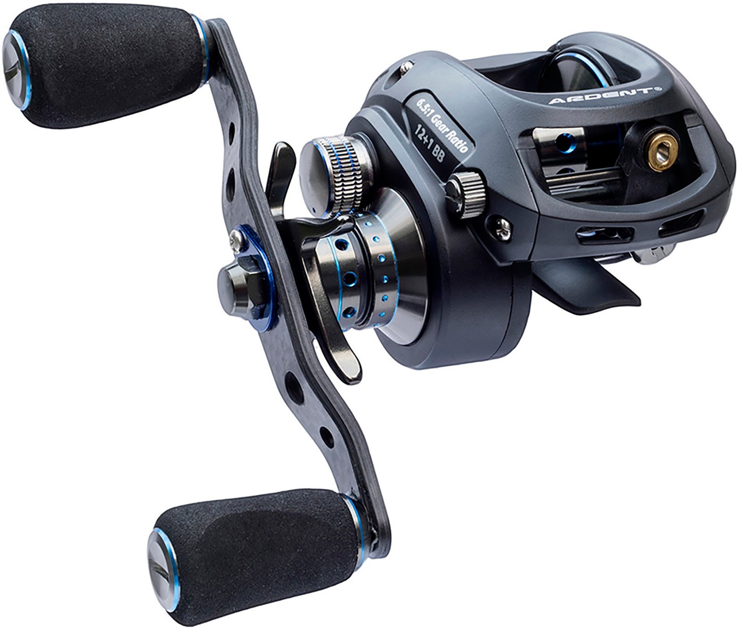 Boost your on-the-water performance with the Ardent Apex Elite Baitcasting Reel. The aluminum frame and spool deliver lightweight strength while the carbon fiber handle and EVA grip allow comfortable handling. Adjustable brakes and gear ratio let you adapt the reel to match your situation.