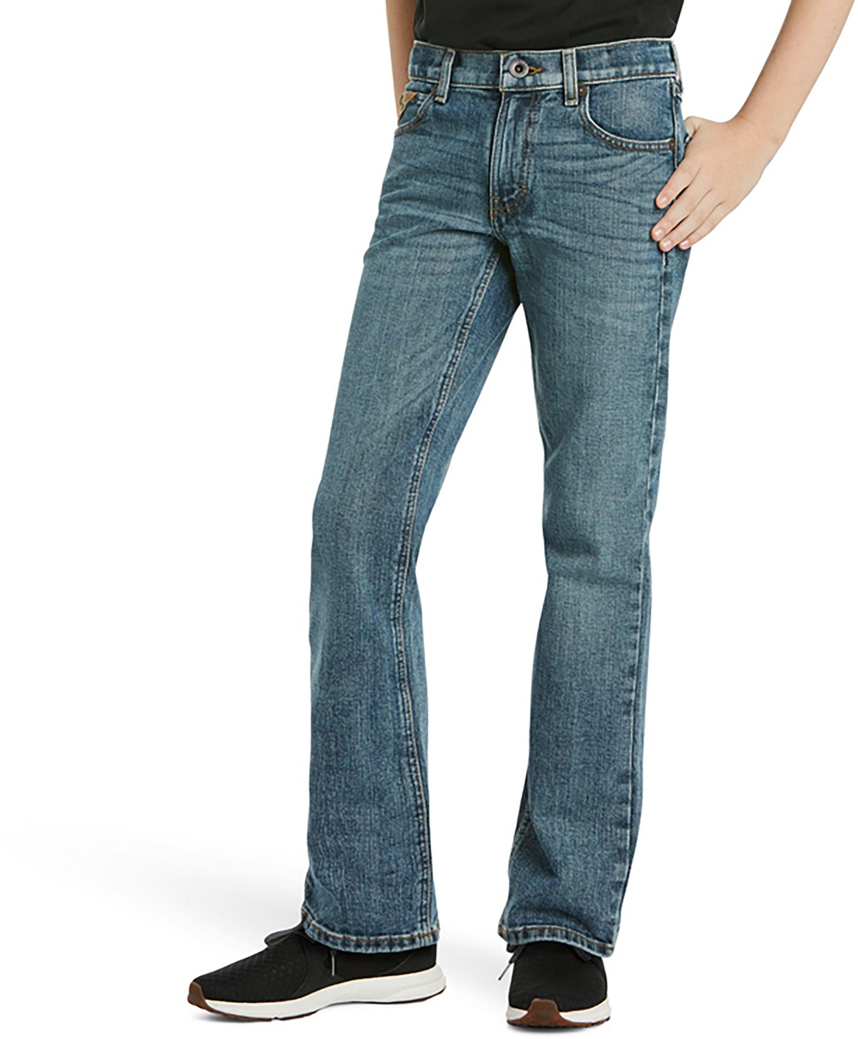 Built tough and nicely styled, these Ariat Boys' B5 Legacy Stretch Stackable Slim Fit Straight Leg Durham Jeans are made to keep up with a boy on the go. They're constructed from 99% cotton and 1% spandex for all-day comfort and stretchiness, while no-rub inseams provide a smooth inner feel. The adjustable waistband offers a precise fit, and extra deep front pockets let you store multiple items at a time.