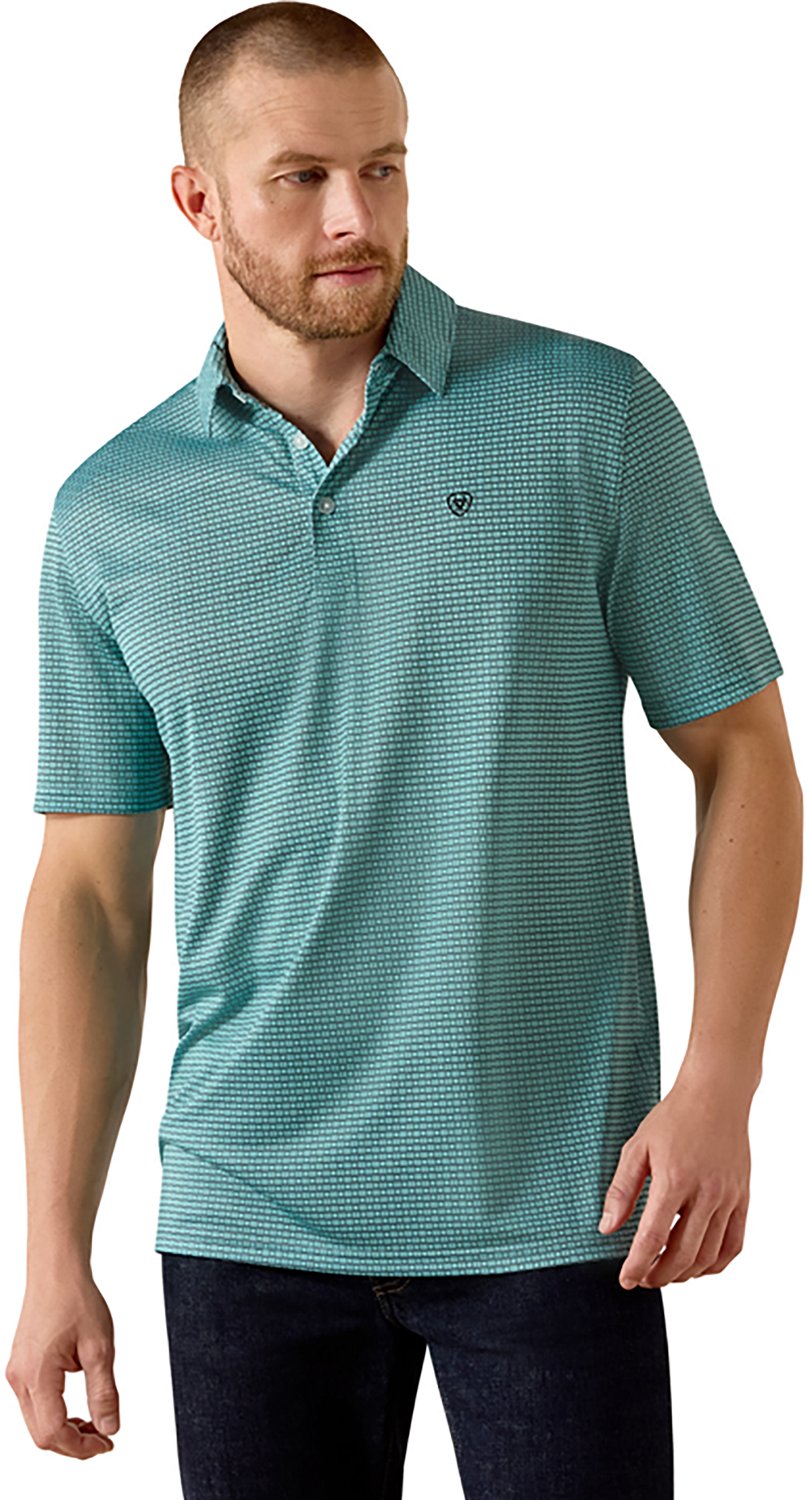 If you want to stay comfortable without sacrificing the look, you need the Ariat Men's Allover Print Polo Shirt in your closet. This shirt is made of 100% polyester jersey that features technologies to wick moisture, keep you cool in warm conditions and fight odors, and it can even protect against UV rays.
