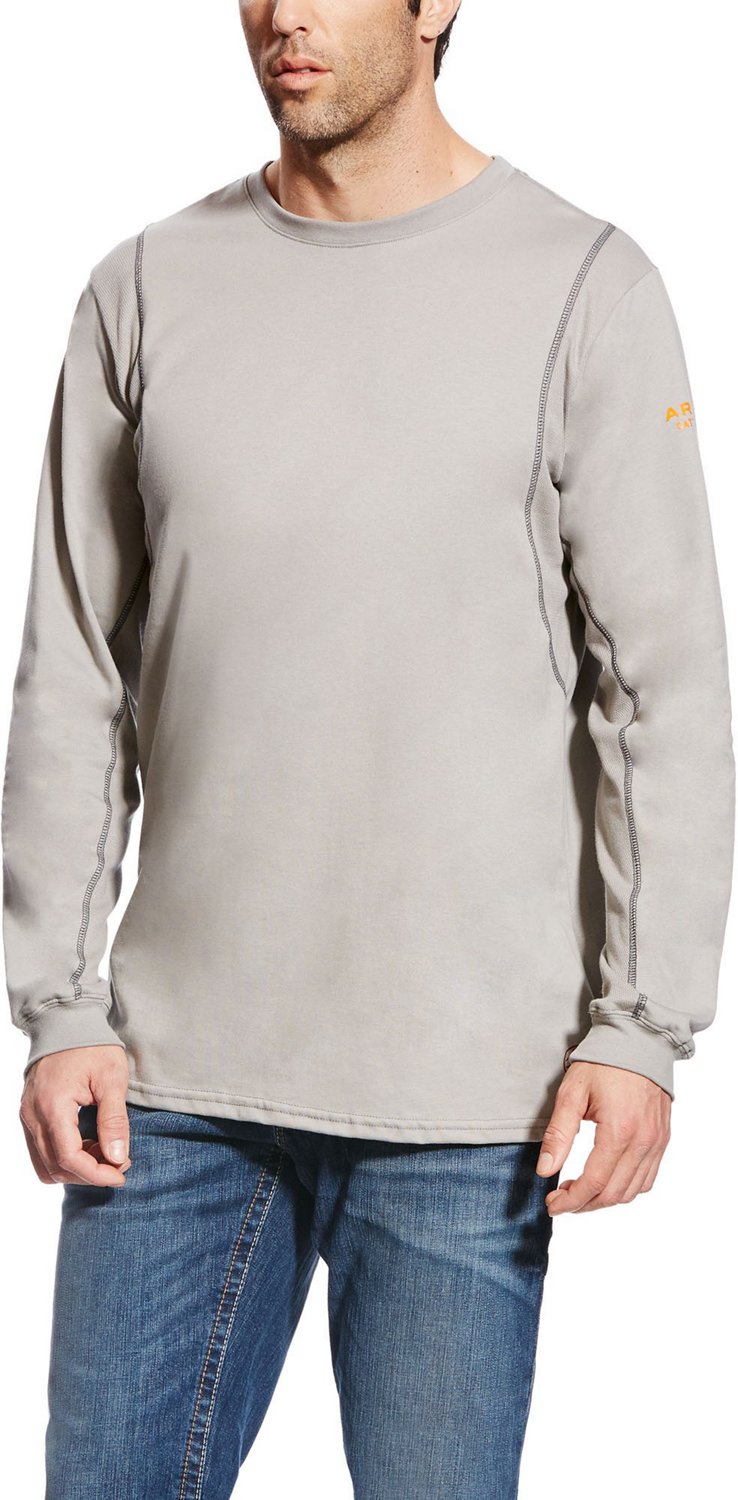 Ariat® flame-resistant knit shirts are constructed with the ultimate comfort, technology and durability in mind. FR fabric is soft against the skin and the taped inside back seam eliminates irritation. Plus, moisture management will keep you cool and dry.