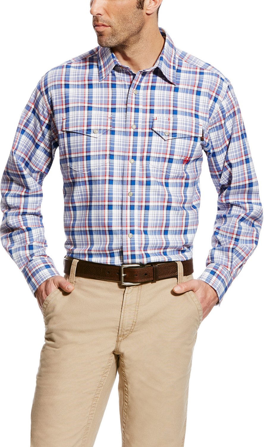 The casual look of the Ariat Men's FR Karnes Snap Work Shirt make it a great choice when you're on the job. Crafted from cotton and nylon, this long-sleeve shirt has snap closures and a left chest pocket for storage space. The arm gussets provide a wide range of motion.