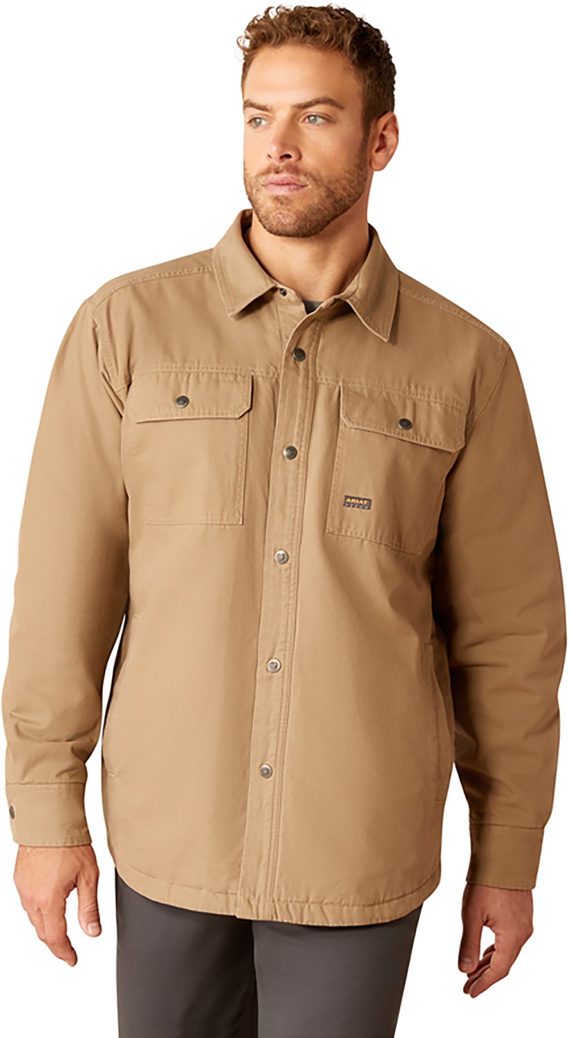 Look your best when you wear the Ariat Men's Rebar Canvas Shirt Jacket. It is made of 100% cotton. The cozy fleece lining provides additional warmth, and its Greater Arm Mobility™ lets you move freely. The garment is prewashed to help minimize shrinking.