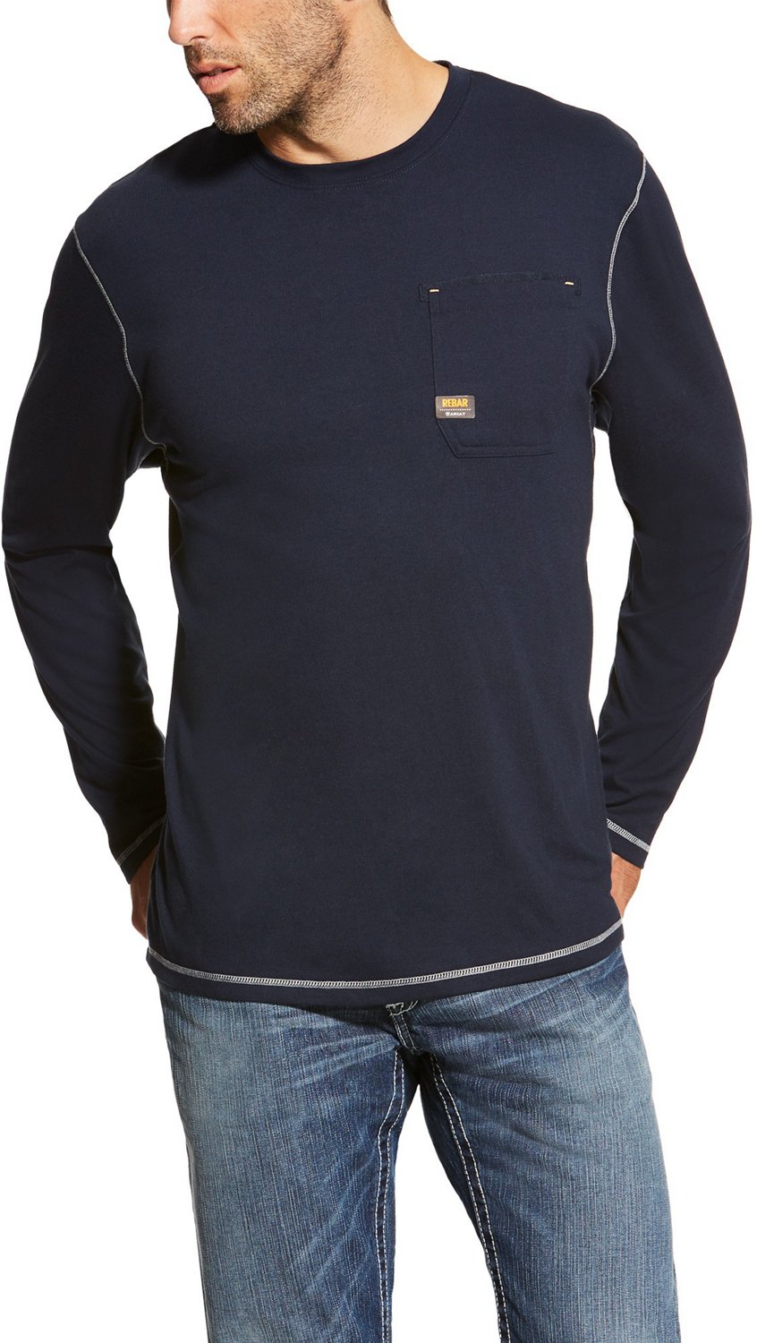 You'll be ready to take on your toughest workdays in the Ariat Men's Rebar Crew Long Sleeve T-shirt. This shirt is made for the job site with VentTEK™ technology keeping you cool, while Moisture Movement Technology™ wicks away sweat to keep you dry and comfortable. The long sleeves provide coverage and warmth and have Greater Arm Mobility underarm gussets for easy movement.