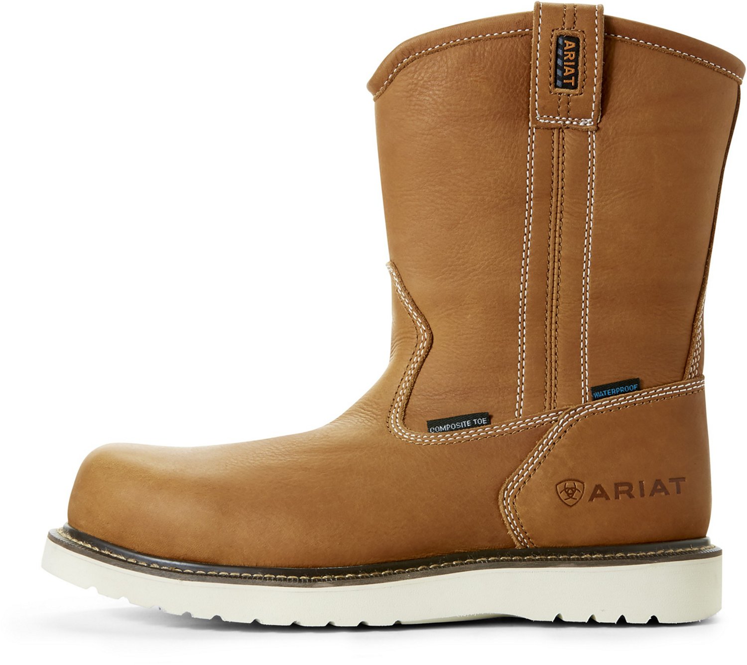 Ensure your safety on the work floor with the Ariat Men's Rebar Wedge Pull-On Composite Toe Work Boots. Leather uppers provide exceptional durability and waterproofing for dry feet all day long, while composite safety toes protect your feet without adding excess weight.