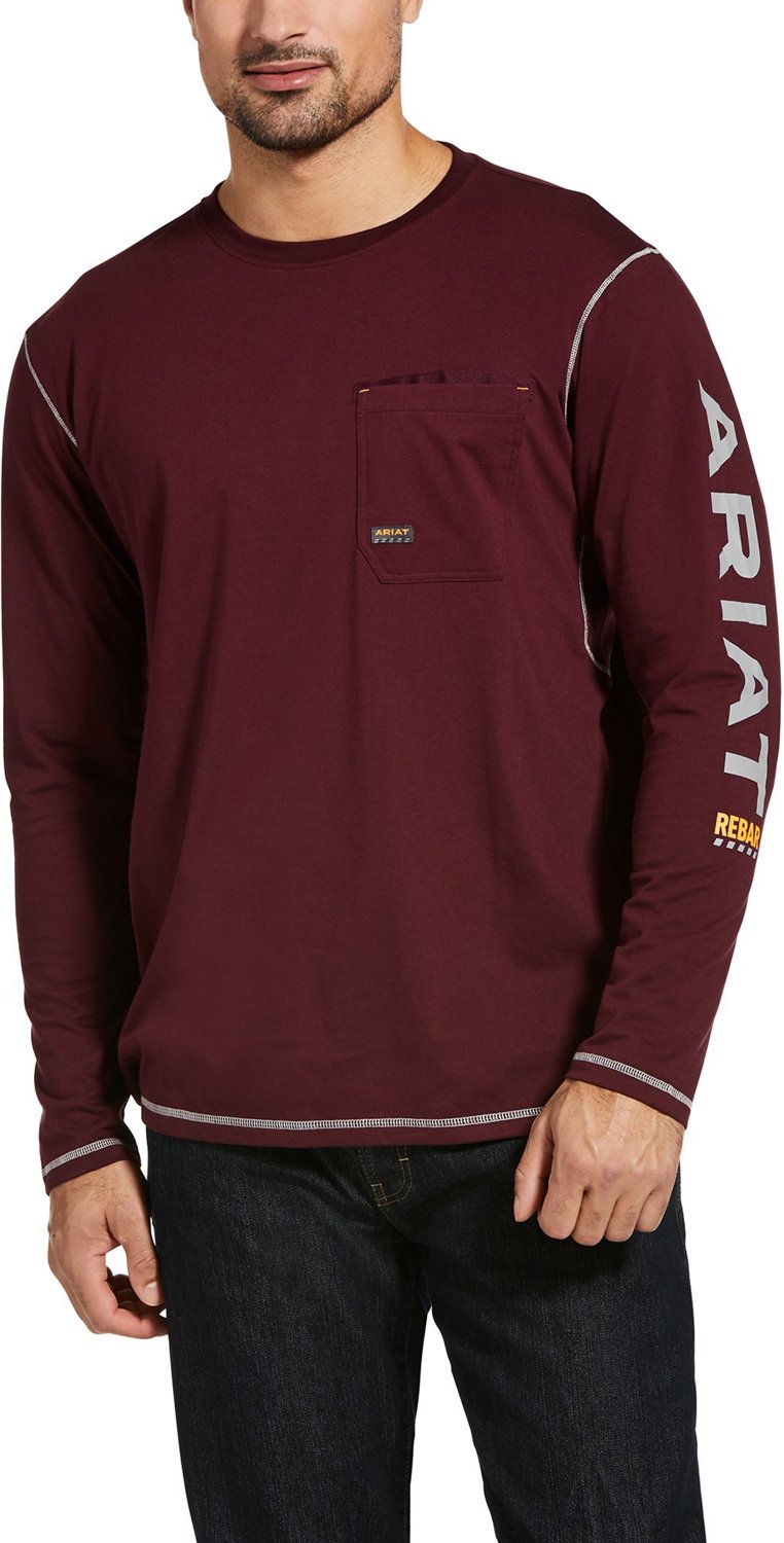 Put on the Ariat Men's Rebar Workman Logo Shirt and get to work. The shirt is made of cotton and polyester with Great Arm Mobility seams to help you stay comfortable and work on the day's tasks, and its wind- and water-resistant design is great for outdoor wear. The stain-repellent finish helps prevent spills and smudges from ruining your day.