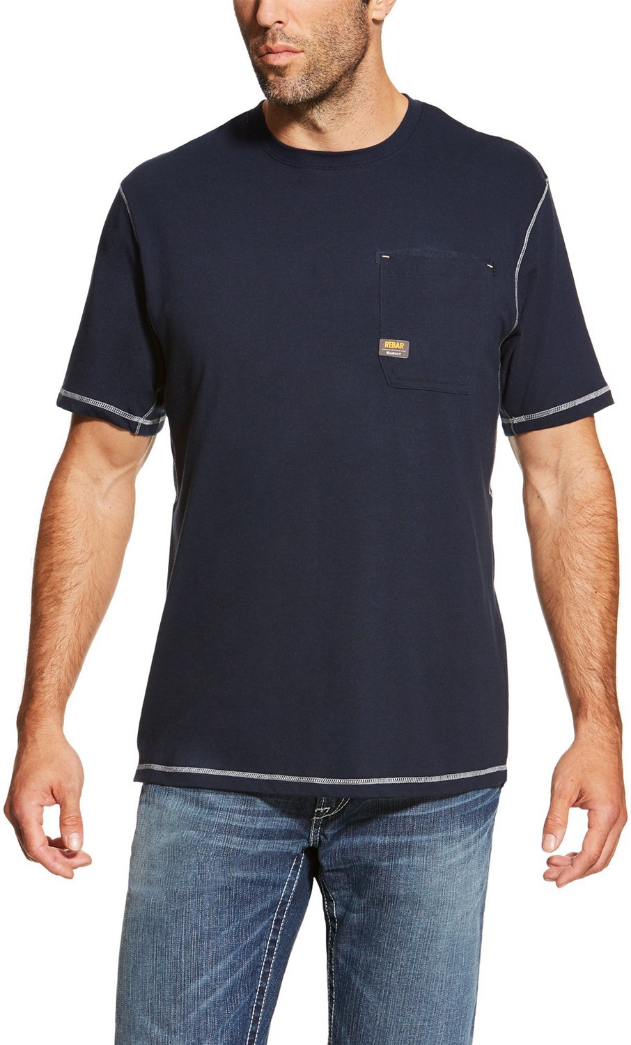 Take on your work day in comfort when you sport the Ariat Men's Rebar Workman Short Sleeve T-shirt. The durable cotton and polyester construction provides a soft, lightweight feel and is enhanced with Moisture Movement Technologyâ„¢ to help you stay dry and comfortable. The VentTEKâ„¢ technology enables air flow and regulates body temperature to keep you cool, while the Greater Arm Mobility underarm gussets offer free range of motion.