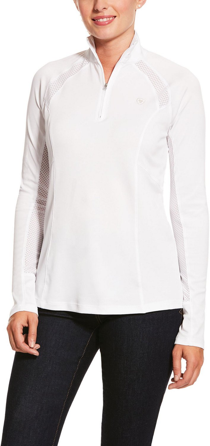 Seize the day outside wearing the Ariat Women's 1/4 Zip Sunstopper 2.0 Long Sleeve Base Layer. The AriatTEK® Heat Series technology cools you down as things heat up, and the garment offers Sun Protection Fabric™ with a 50 UPF rating to help keep the sun's rays at bay.