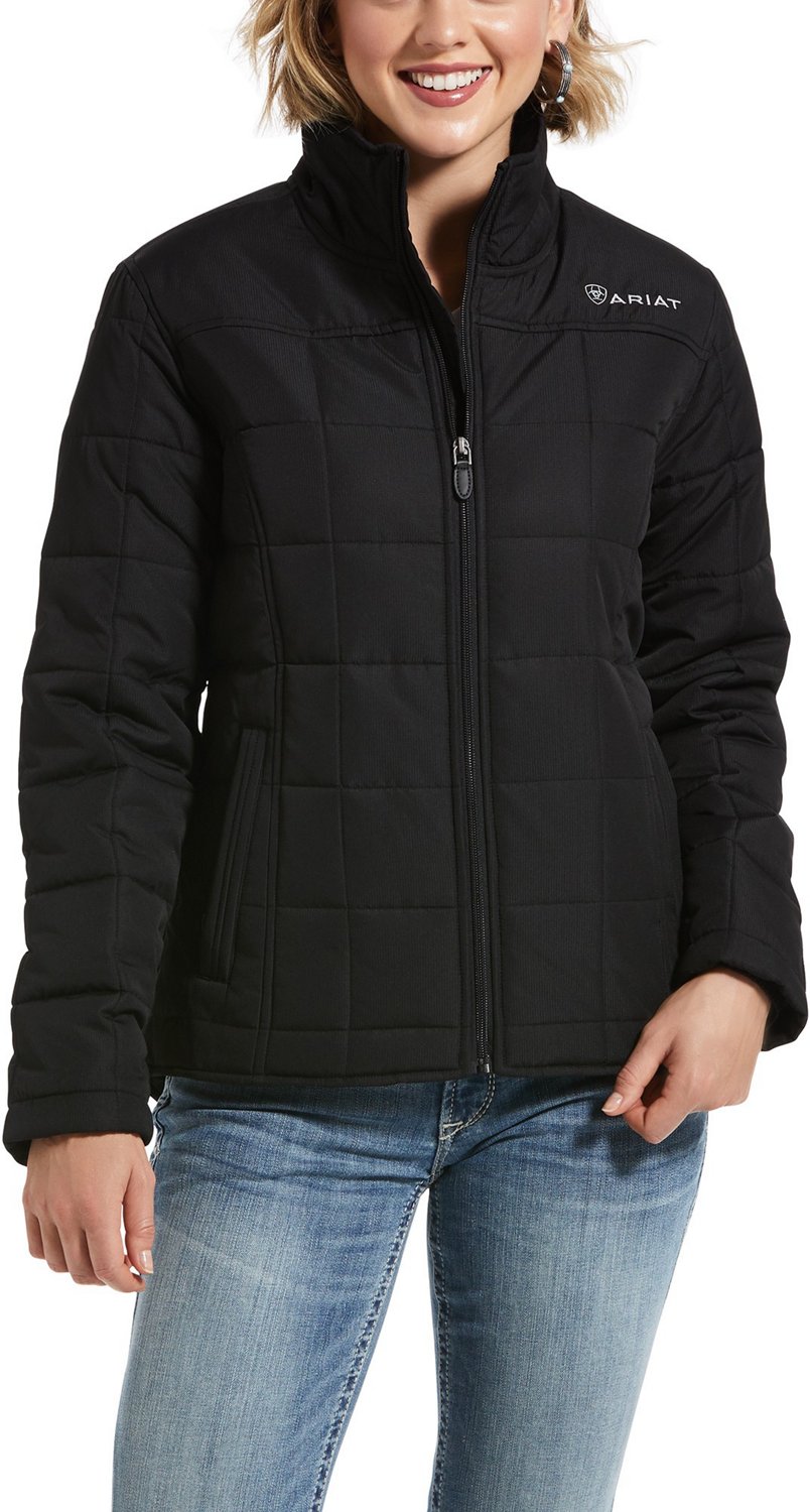 Layer up and finish off your outfit for the outdoors with the Ariat Women's Plus Crius Insulated Jacket. The Cool Climate™ insulation helps trap in heat to keep you cozy, and the adjustable waist with a drawstring lets you tighten or loosen the size for a flattering fit. A 100% polyester construction remains comfortable and resilient in the elements, and the zipper hand pockets and an interior concealed carry pocket keep your phone, keys and more safe.