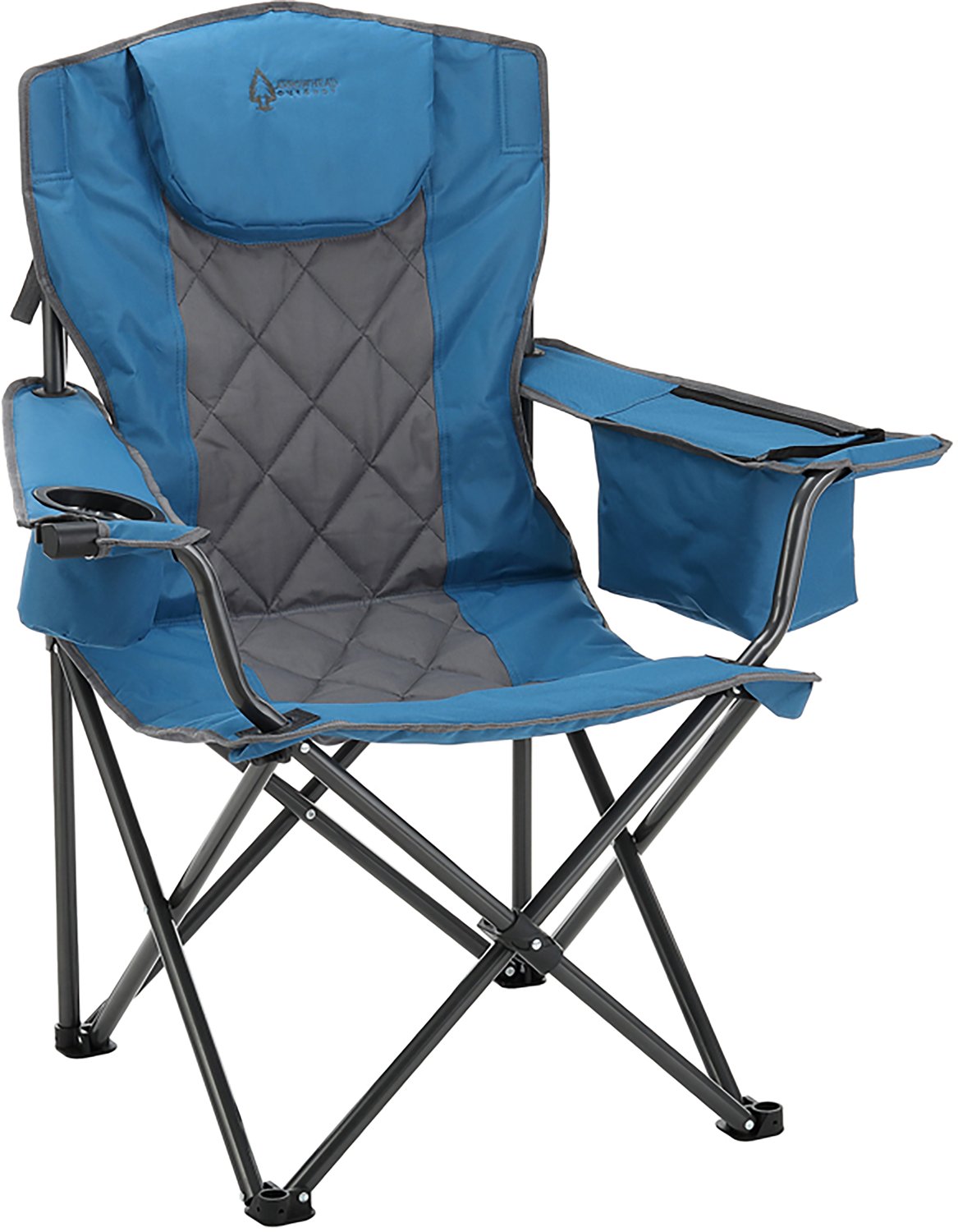 Unwind in outdoor luxury with the Arrowhead Outdoor Portable Folding Camping Quad Chair that is designed for maximum comfort and convenience. This portable camping chair folds and unfolds in seconds and boasts an array of features that make your camping trips, picnics, or backyard barbecues even more enjoyable. Sink into the deep padding of the plush seat, headrest, and armrests for utter relaxation, no matter how long you’re outdoors. The included 6-can cooler pouch hangs from an armrest so you can keep your drinks chilled and close at hand. The other armrest has an insulated can holder and a wine glass holder – no more spills! This camping chair is also built to provide reliable support for all body types, thanks to its weight capacity of 450 lbs.