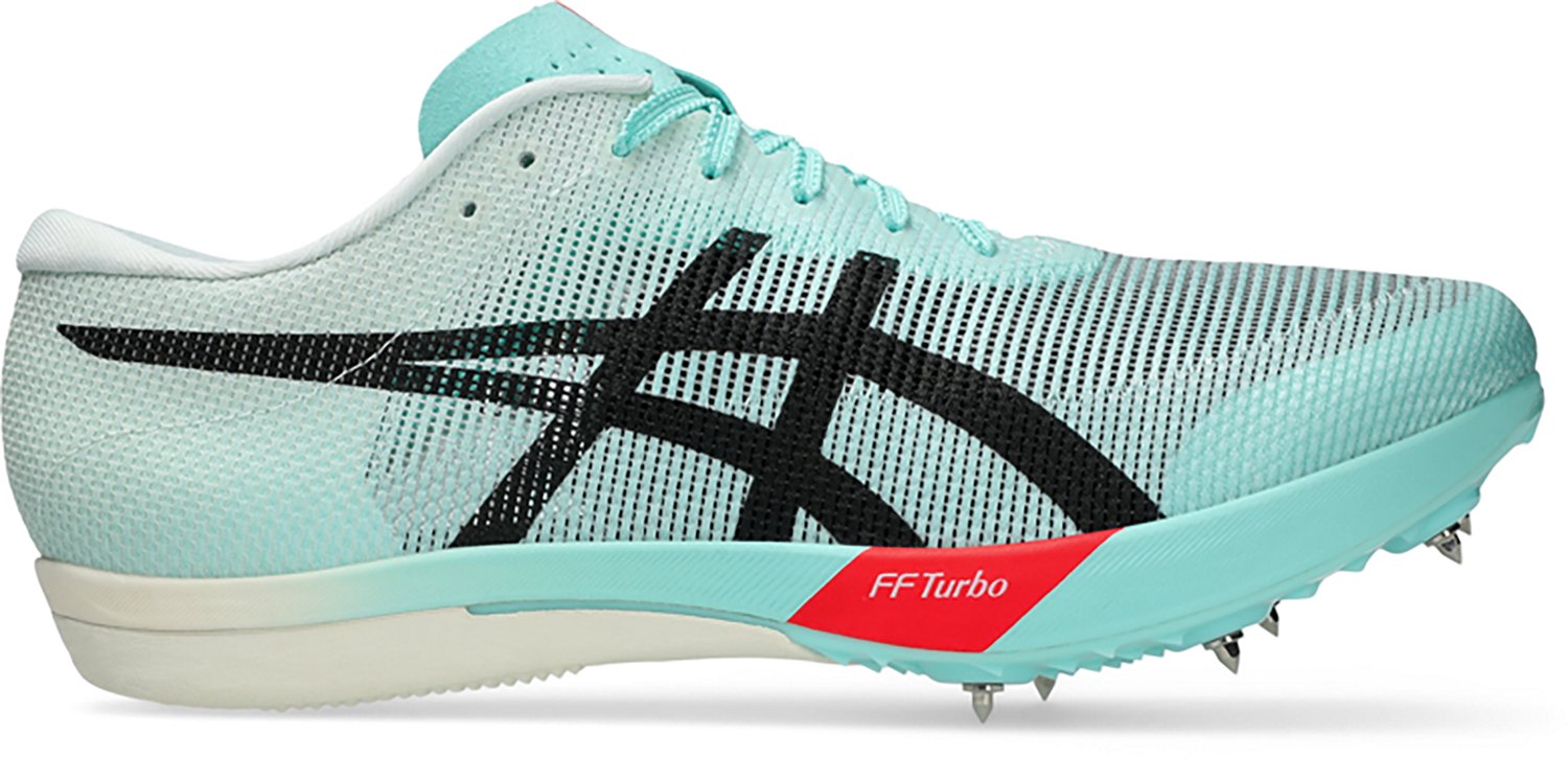 Maximize your performance in the ASICS Adults' Metaspeed LP 2 Track Cleats. Their MOTION WRAP upper improves breathability and helps provide a supportive fit. The FF BLAST TURBO cushioning improves compression and creates a responsive feel underfoot, and their carbon plate guides your foot throughout your step and propels your foot forward. The outsole spike configuration is designed to increase traction.
