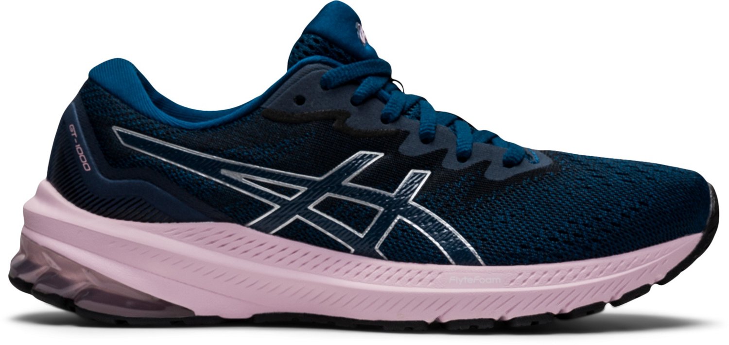 Take on the trail or the treadmill with the ASICS Women's GT-1000 11 Running Shoes. Nylon construction withstands heavy use, and the LITETRUSS midsoles offer the support you need. Special cushioning encourages soft landings mile after mile.