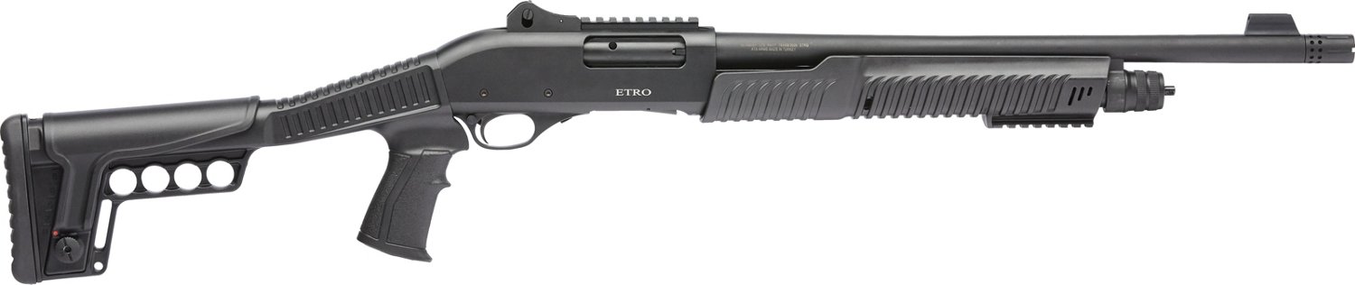 The ATA Arms Etro Tactical 12 Gauge Pump-Action Hunting Shotgun offers a powerful performance for home defense and hunting applications. Featuring an 18.5-inch barrel and a steel receiver, this shotgun provides strength and durability for long-lasting use. The synthetic pistol-grip stock enhances handling, while the 5-round capacity allows for efficient use. Weighing 6.17 pounds, it remains manageable for extended shooting sessions. The single trigger offers quick firing, and the manual safety provides added security when handling the shotgun. Designed with a 3-inch chamber and a 40-inch overall length, this tactical shotgun is built to perform under various conditions. Whether for home defense or recreational shooting, the ATA Arms Etro is a versatile choice that offers ease of use, quick follow-up shots, and a smooth shooting experience.