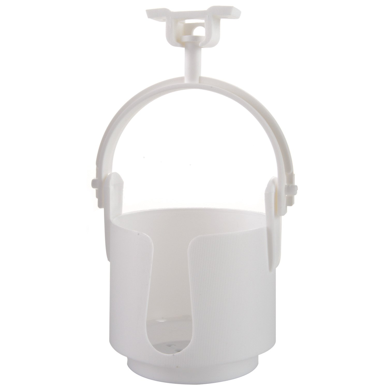 Made from white molded plastic with a slot to accommodate a coffee cup handle