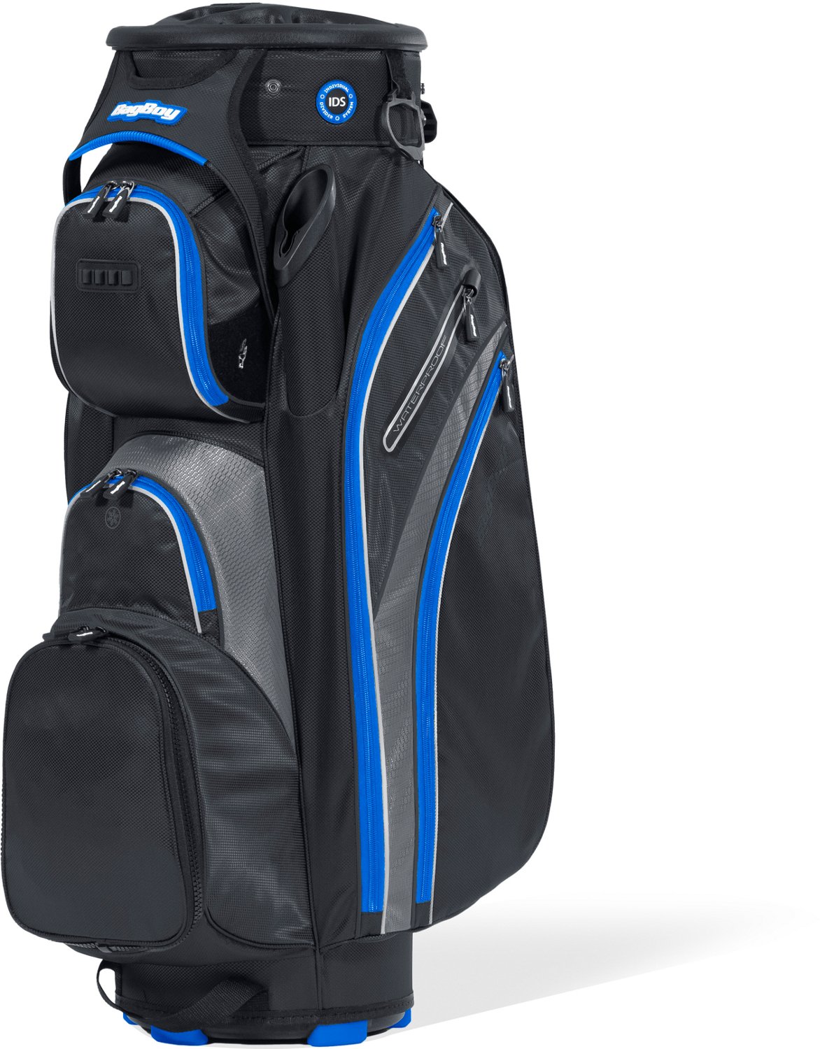 Keep your golf clubs organized with the Bag Boy Revolver XP Cart Bag. This durable cart bag features 9 zippered pockets for your golfing essentials and has full-length dividers for your clubs. The CLIP-LOK and Grip-LOK base technologies keep your clubs in place to help you stay organized, while the Top-Lok easily attaches to your golf cart. The 360-degree revolving top offer quick access to your clubs from any angle, and the lift-assist handles make it safe and comfortable to load and unload your bag.