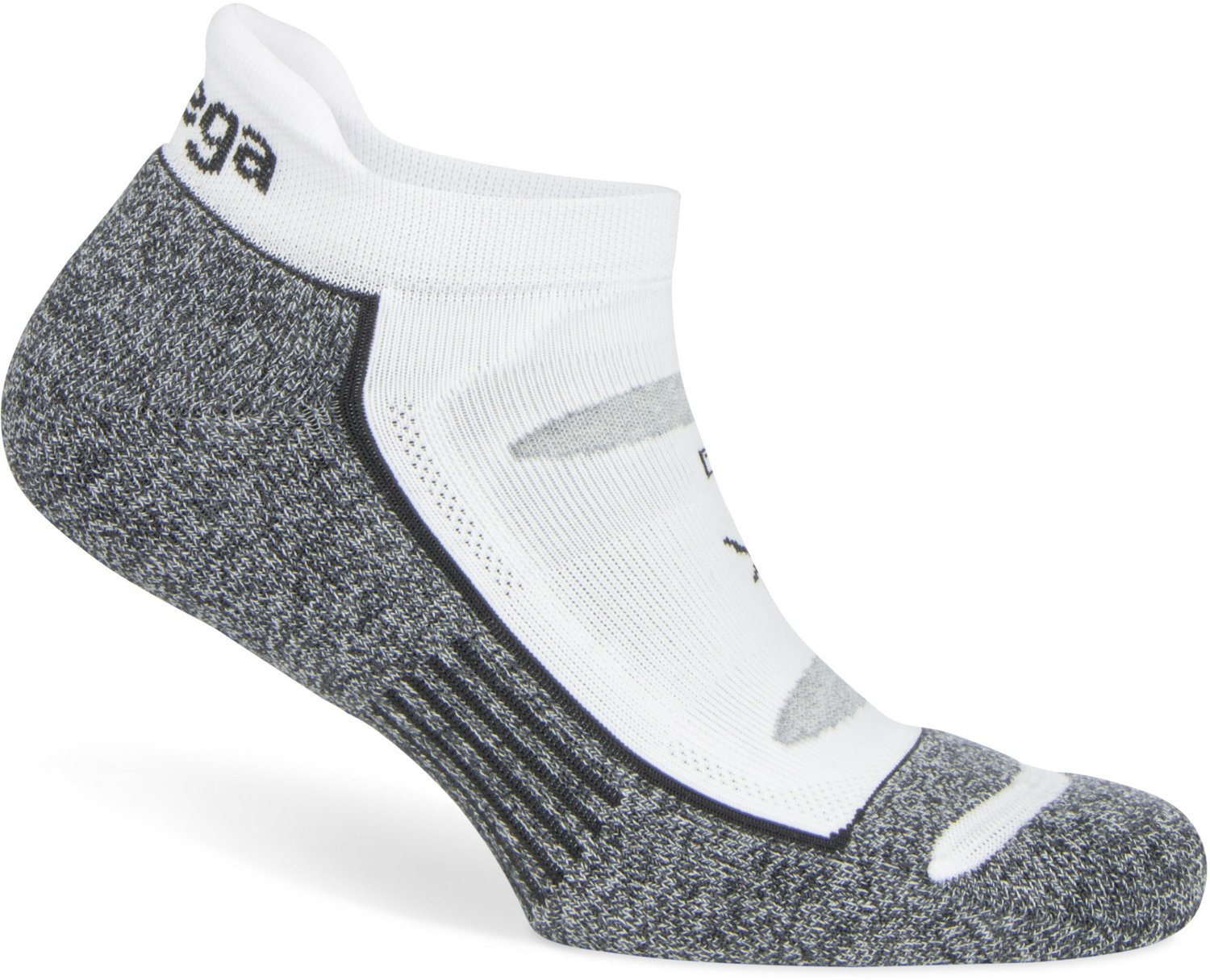Bring comfort along as you rack up the miles in the Balega Blister Resist No Show Running Socks. The enhanced elastic grip construction with high heel tabs and wide arch support bands offer a secure, no-slip fit. The reinforced microfiber mesh ventilation panels supply a breathable feel. The handlinked, seamless toes encourage durability, while the Drynamix® moisture wicking fibers and mohair help keep your feet dry and comfortable on the go.