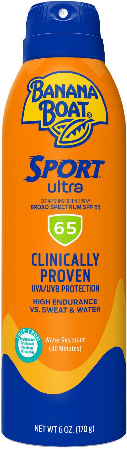 Make sun protection stress-free with the Banana Boat Sport Ultra Spray 6 oz SPF 65 Sunscreen.. This reef-friendly sunscreen sprays on quickly and dries in seconds. It protects against 98% of sun rays and doesn't wash off with sweat or water.