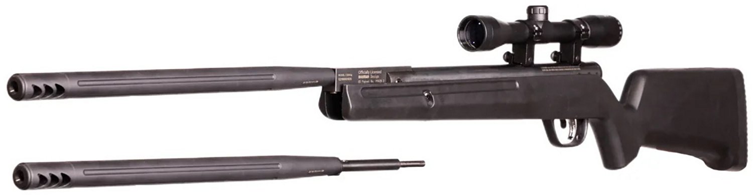The Barra Airguns 1200g .117/.22 Dual Caliber Break Barrel Air Rifle features an all-weather polymer stock, polymer barrel sleeve and two interchangeable barrels allowing you to swap between .117 and .22 calibers. The gun comes equipped with gas piston technology and a 4x32 optic.