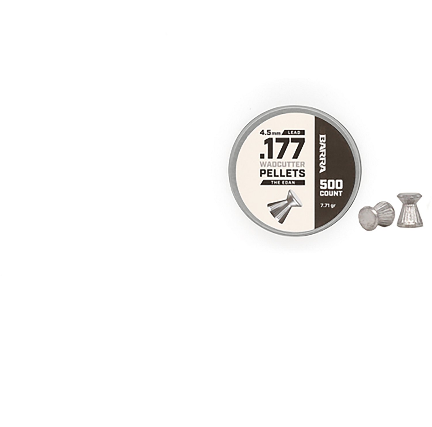 Hunt small game with the Barra Airguns The Edan/Edgecutter .177 Caliber Pellets 500-Pack. The wadcutter shape provides optimized penetration, while the consistent weight and shape ensure reliable operation. The lead construction delivers increased density and energy transfer properties.