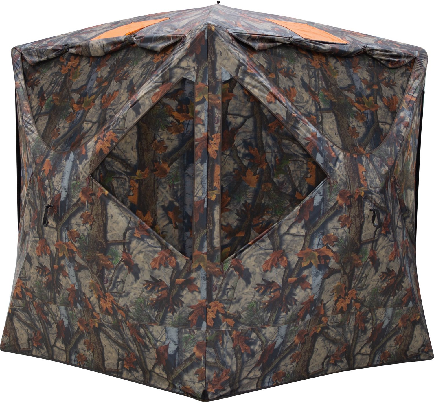 Be ready at any time during your hunting excursion with the Barronett Tag Out Hub Hunting Pop Up Ground Bloodtrail Woodland Blind. The replaceable shoot-through mesh for broadhead use provides protection and the ability to take an accurate shot, and low-profile windows offer secondary shooting options. The detachable blaze orange safety panels delivery additional protection.