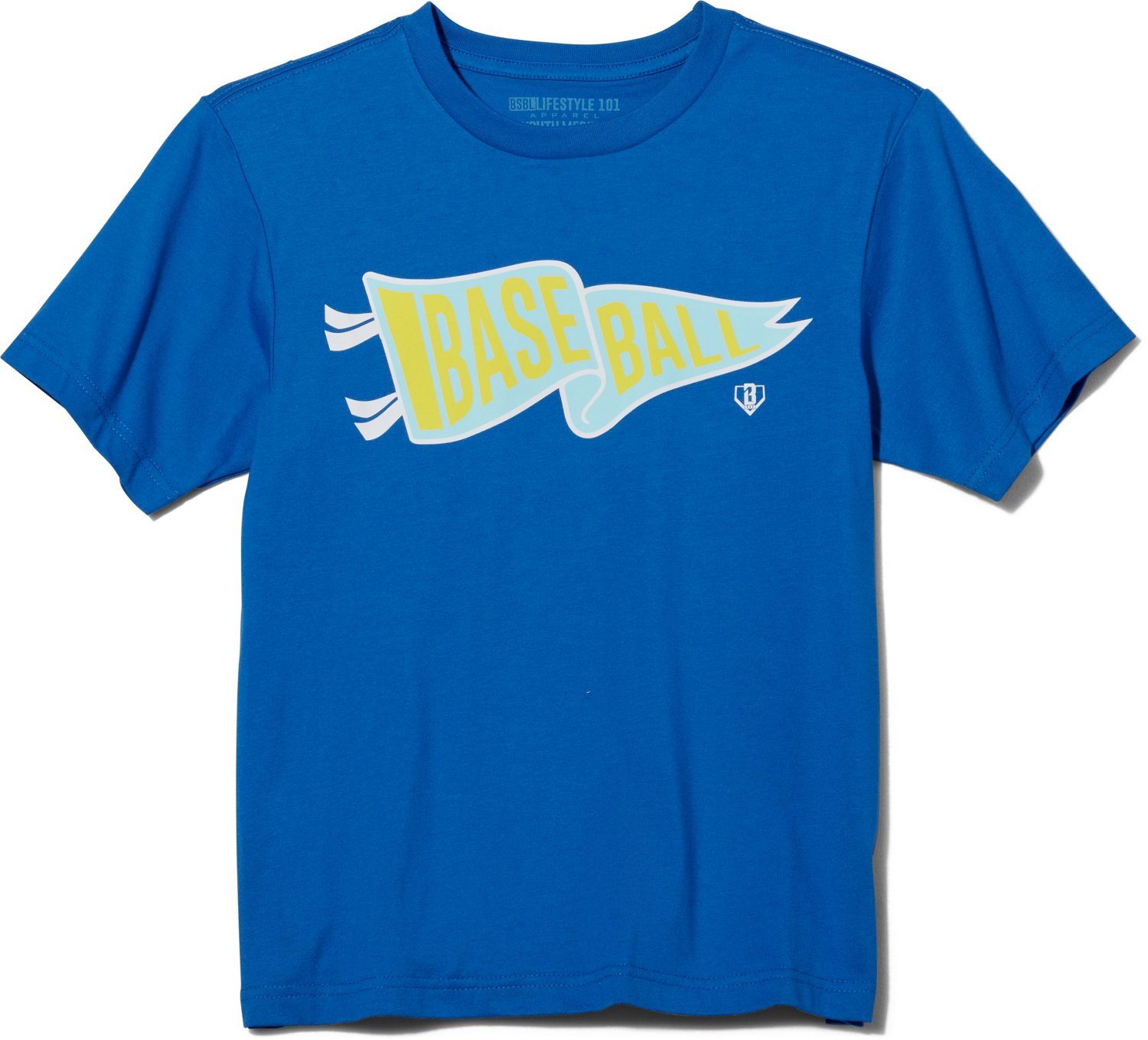 Show off your love for the sport with the Baseball Lifestyle 101 Boys' Pennant Graphic T-shirt. The cotton and polyester material provides a comfortable feel, while the screen-printed graphics offer a stylish look.