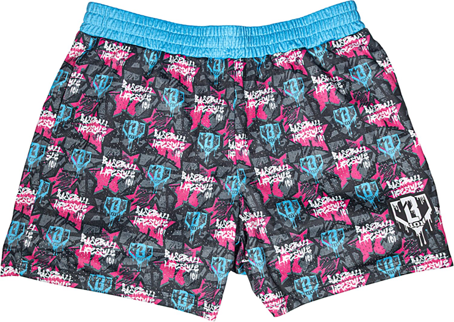 Express yourself with the Baseball Lifestyle Adults' Tag Mesh Shorts. The 100% polyester mesh material is durable and breathable, and the all-over print pattern is bright and colorful.