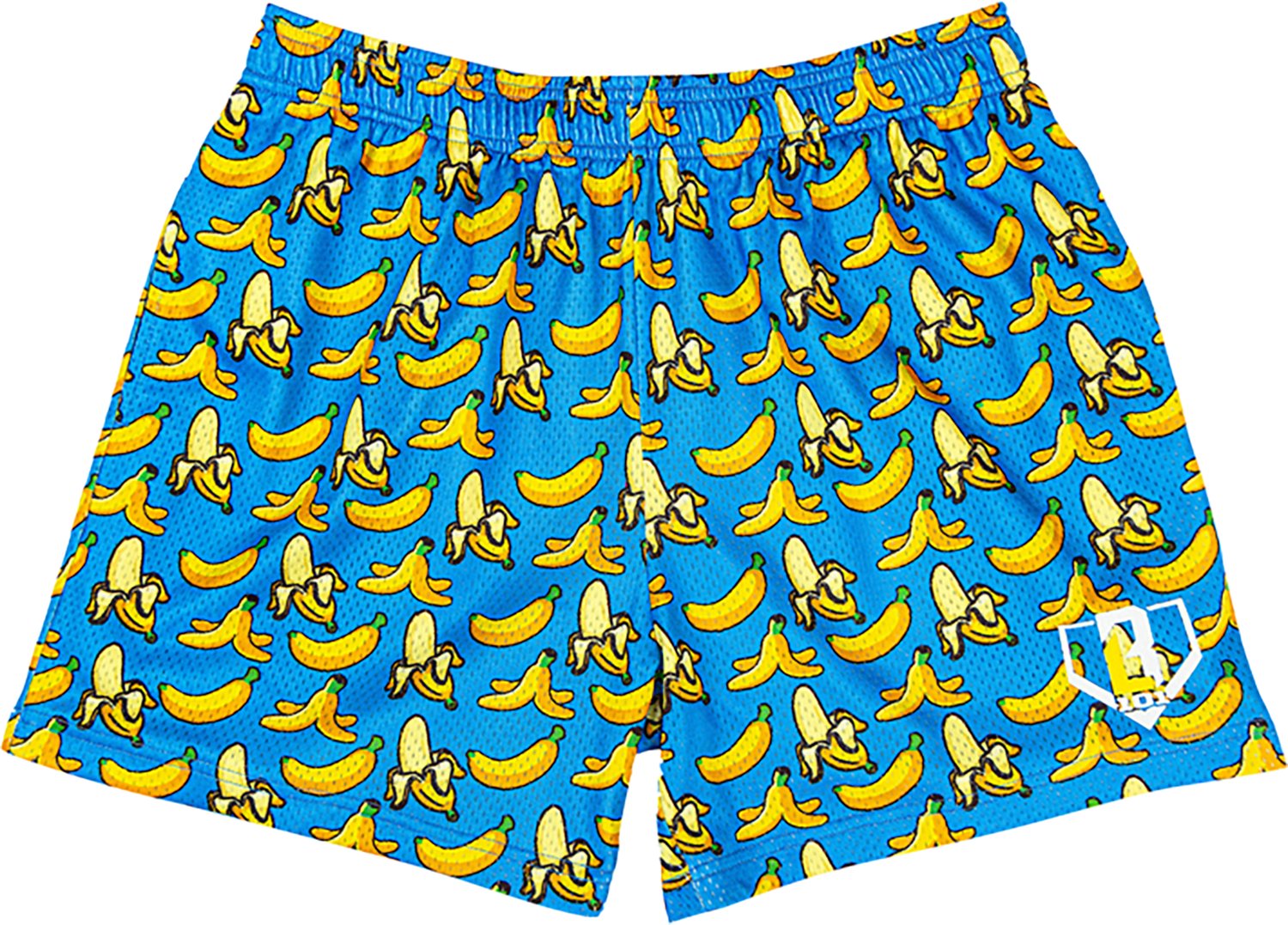 Go bananas with the Baseball Lifestyle 101 Adult Banana Shorts 5 in. The polyester material provides a comfortable feel, while mesh fabric promotes breathability. The elastic trim and inner drawstring offer a custom fit, and the allover banana print delivers a fun, stylish look.
