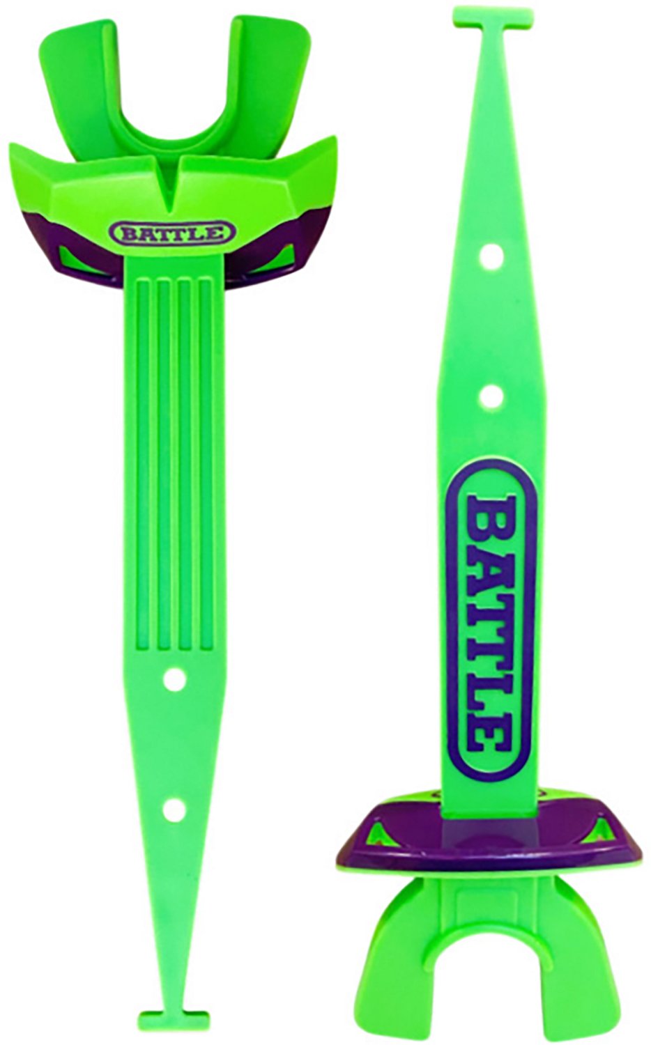 Focus on the game while keeping your mouth safe with the Battle Adults' Speed Pro Thick Strap Mouthguard. The patented design leverages SCUBA breathing innovations to make the largest breathing hole on the market, allowing high air intake during strenuous activity. Its lip shield and bite mat protects your mouth from damage, and it can be worn with braces while safeguarding them. No boiling is required making it instantly ready for gameplay.