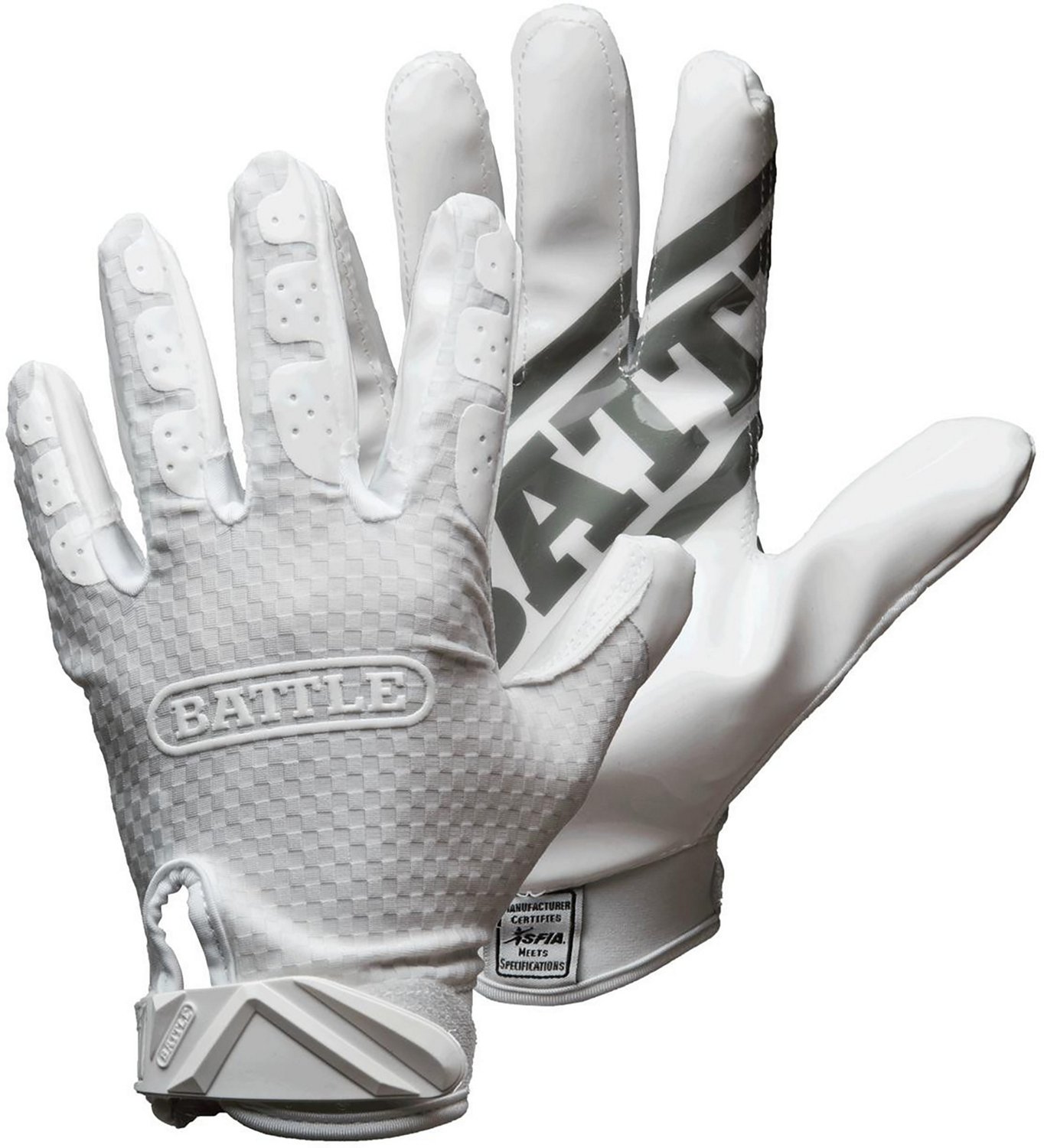 Grab every ball that comes your way with help from the Battle Adults' Triple Threat Football Gloves. The Ultrastick palms deliver a secure grip, while the hand backing is woven in a checkered pattern for flexibility and long-lasting wear.