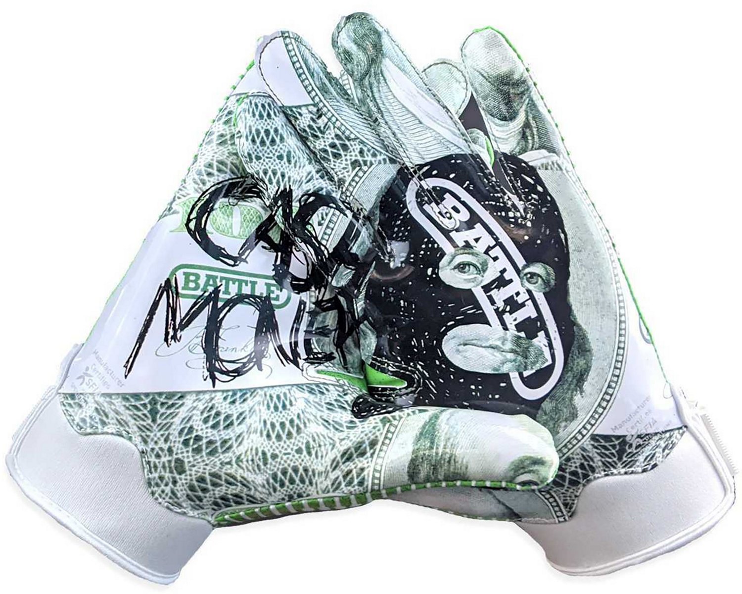 Play your best football with the Battle Youth Cash Money Football Gloves. These gloves are made with PerfectFit breathable materials for comfortable wear. The reinforced stitching and wear points allow for added durability, while the Ultra-Stick palm takes you right to the legal stick limit for great grip.