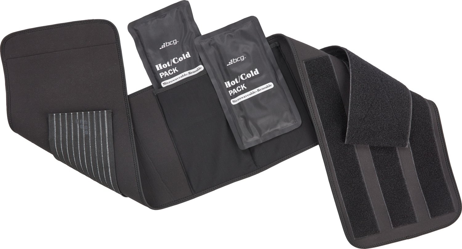 Ease your back with the help of the BCG Back Support with Hot/Cold Packs. This back support holds 2 reusable hot/cold packs that can be microwaved for instant heat or chilled to ice out the pain. It has a dual-layer design that adjusts for your preferred level of compression, and firm inserts that support your spine.